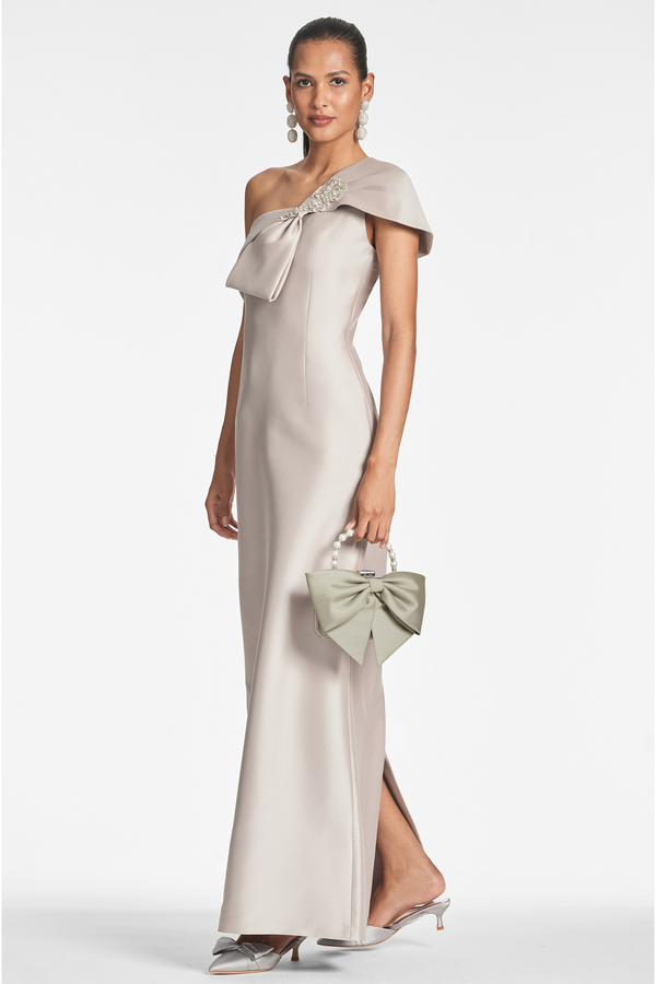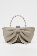 Introducing the Bubbly Bag, a vision of elegance inspired by sheer imagination. This fully-framed evening bag boasts a luxurious silver-tone finish and includes an interior pocket for practicality. Crafted from rich Mikado fabric, it exudes opulence, while the pearl and crystal embellished top handle add a touch of timeless sophistication. A perfect companion for any soirée or celebration.
