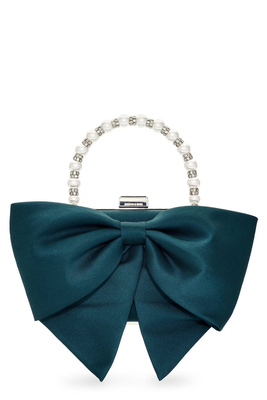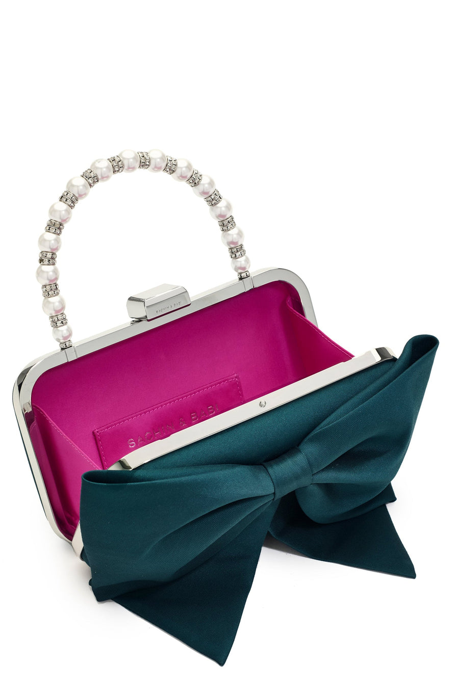 Introducing the Bubbly Bag, inspired by exactly what you would imagine. This fully-framed evening bag features a silver tone finish and an interior pocket. The pearl and crystal embellished top handle speaks to its timeless sophistication. The perfect companion to any fête.
