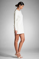 The Parker Dress is the easy, timeless and elegant look you have been searching for. The dress features an embellished neckline and back detail, thick stretch crepe fabric, and a mini-length silhouette. Complete this bridal look with some heels and earrings and you are ready for any wedding event!