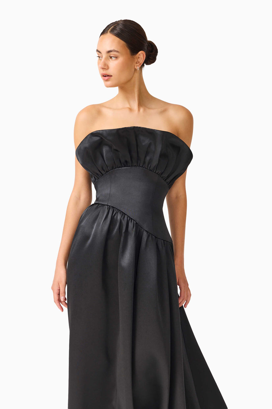 The Laurel Sleeveless Maxi in Black is a masterclass in midnight-inspired sophistication. Defined by a sweeping A-line silhouette and a romantic structured ruffle at the bust, this floor-length gown offers a seamless blend of classic grace and contemporary noir flair. Thoughtfully designed with detachable straps, it transitions effortlessly from a supportive halter to a sleek strapless look. Finished with an invisible back zip for a flawless fit, the Laurel in black is a quintessential choice for the modern minimalist or the black-tie gala guest.