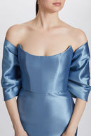 Mikado shoulder wrap with hidden elastic in the back.