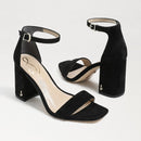 The Daniella Block Heel Sandal features Black Suede with a synthetic insole and a 3.25 inch block heel.