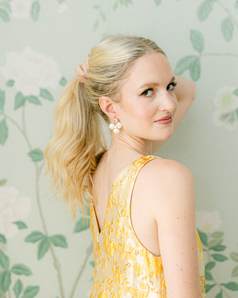 Elevate your look with our Annabelle Earrings, featuring a crystal post and three delicate mother of pearl petals with a lustrous pearl center. The combination of light-catching crystals and the elegance of mother of pearl creates a sophisticated, feminine design that’s perfect for weddings, special events, or adding luxury to your everyday style. Shop our Annabelle Earrings for a unique blend of elegance, shine, and timeless beauty.