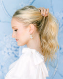 The Fallon Earrings feature a delicate pearly crystal flower design, offering a timeless, elegant touch. Perfect for adding sophistication to your wedding day or any special occasion, these earrings combine the refined beauty of pearls with the sparkle of crystals. With their versatile style and intricate details, the Fallon Earrings are an essential accessory for both formal and everyday wear.