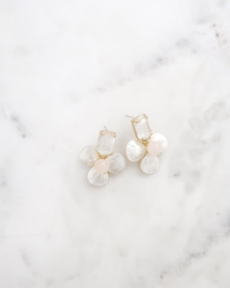 Add timeless elegance to your everyday, wedding day or special event with the Madeleine Crystal Earrings. Featuring a delicate floral design with sparkling crystals and mother of pearl, these earrings are the perfect statement piece for any occasion. Handcrafted for comfort and luxury, the Madeleine Earrings offer a refined, sophisticated touch that complements both bridal and formal looks with effortless beauty.