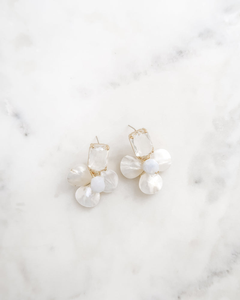 Add timeless elegance to your everyday, wedding day or special event with the Madeleine Crystal Earrings. Featuring a delicate floral design with sparkling crystals and mother of pearl, these earrings are the perfect statement piece for any occasion. Handcrafted for comfort and luxury, the Madeleine Earrings offer a refined, sophisticated touch that complements both bridal and formal looks with effortless beauty.