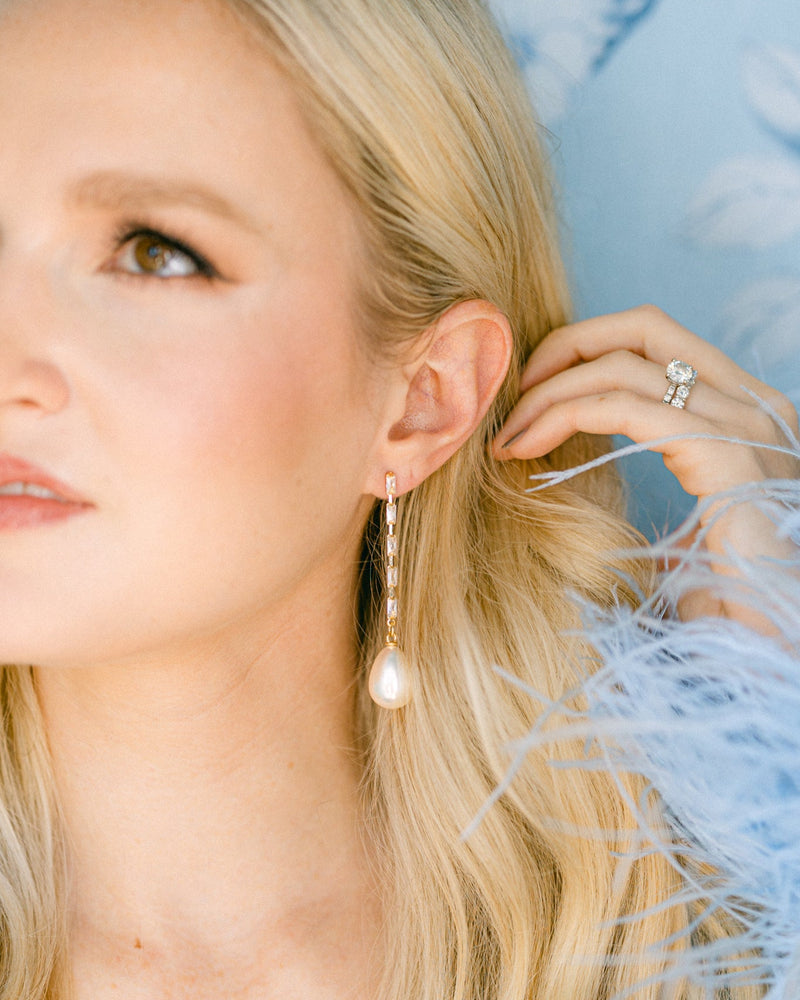 The Sterling Drop Earrings offer a stunning combination of timeless elegance and modern design. Featuring sleek metallic elements and radiant crystal accents, these drop earrings make a refined statement, perfect for weddings, special occasions, or adding a touch of sophistication to everyday wear. Handcrafted for comfort and versatility, the Sterling Drops bring a sense of understated glamour to any ensemble, making them a must-have addition to your jewelry collection.