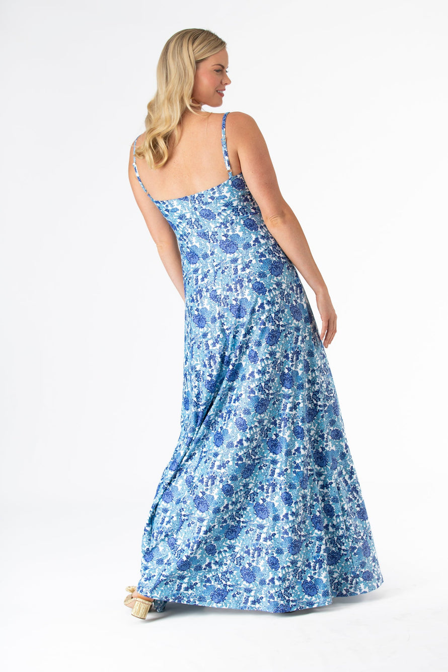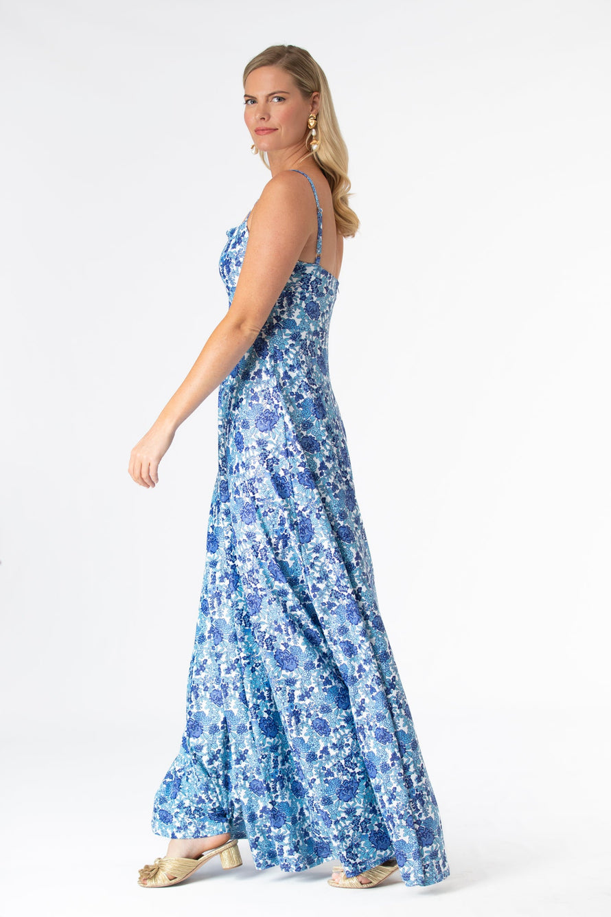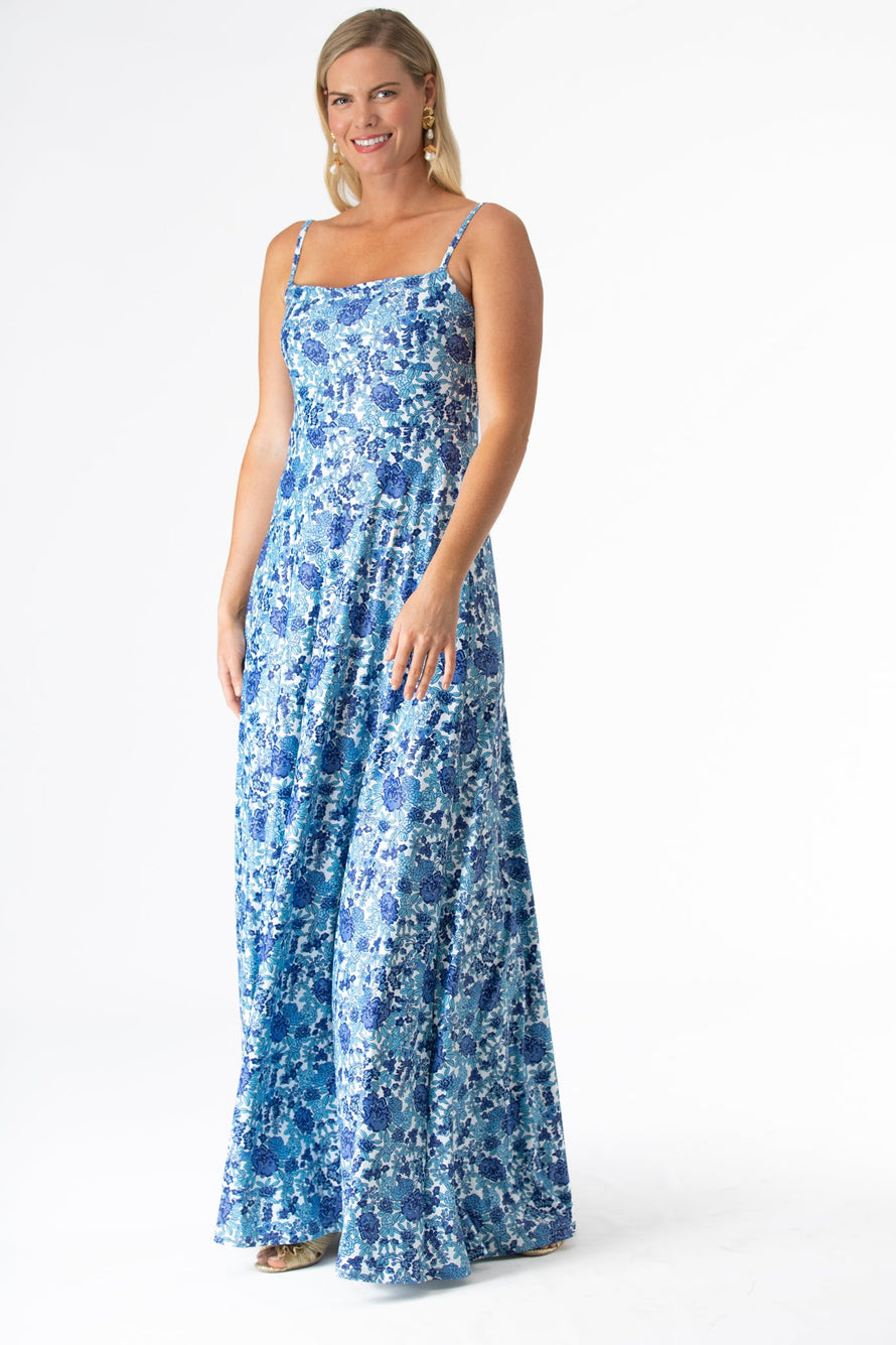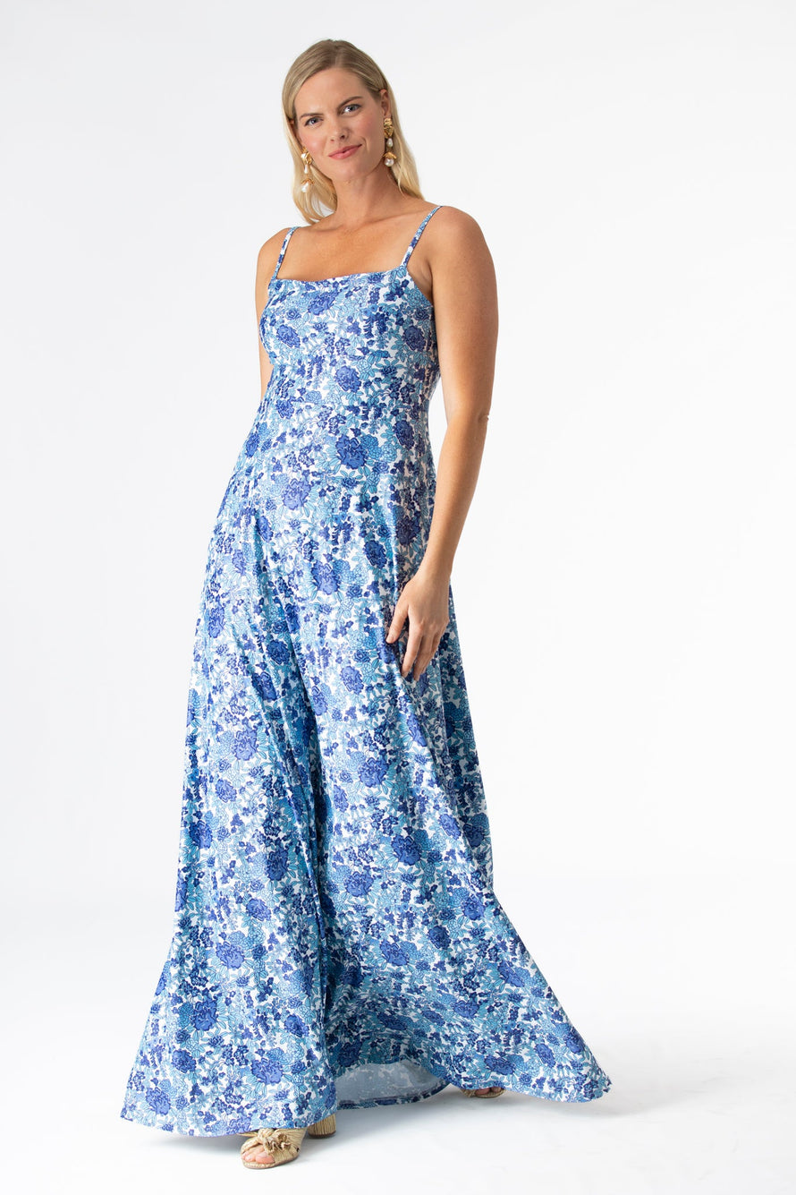 The effortless Brigette dress features a soft square neckline, a figure trimming waistband, and a sweeping floor-length skirt. The slim and delicate straps and dainty yet sexy dipped back make this dress the ultimate understated stunner! Shown here in our Porcelain Petals print. Sizing runs slightly big (and they stretch!)...if you are between sizes we recommend sizing down. - Made in our S&Q Signature Italian Matte Stretch fabric - 90% polyester 10% Spandex - 4-way stretch - Sizing runs slightly big (and they stretch!)...if you are between sizes we recommend sizing down- Model is wearing a size S