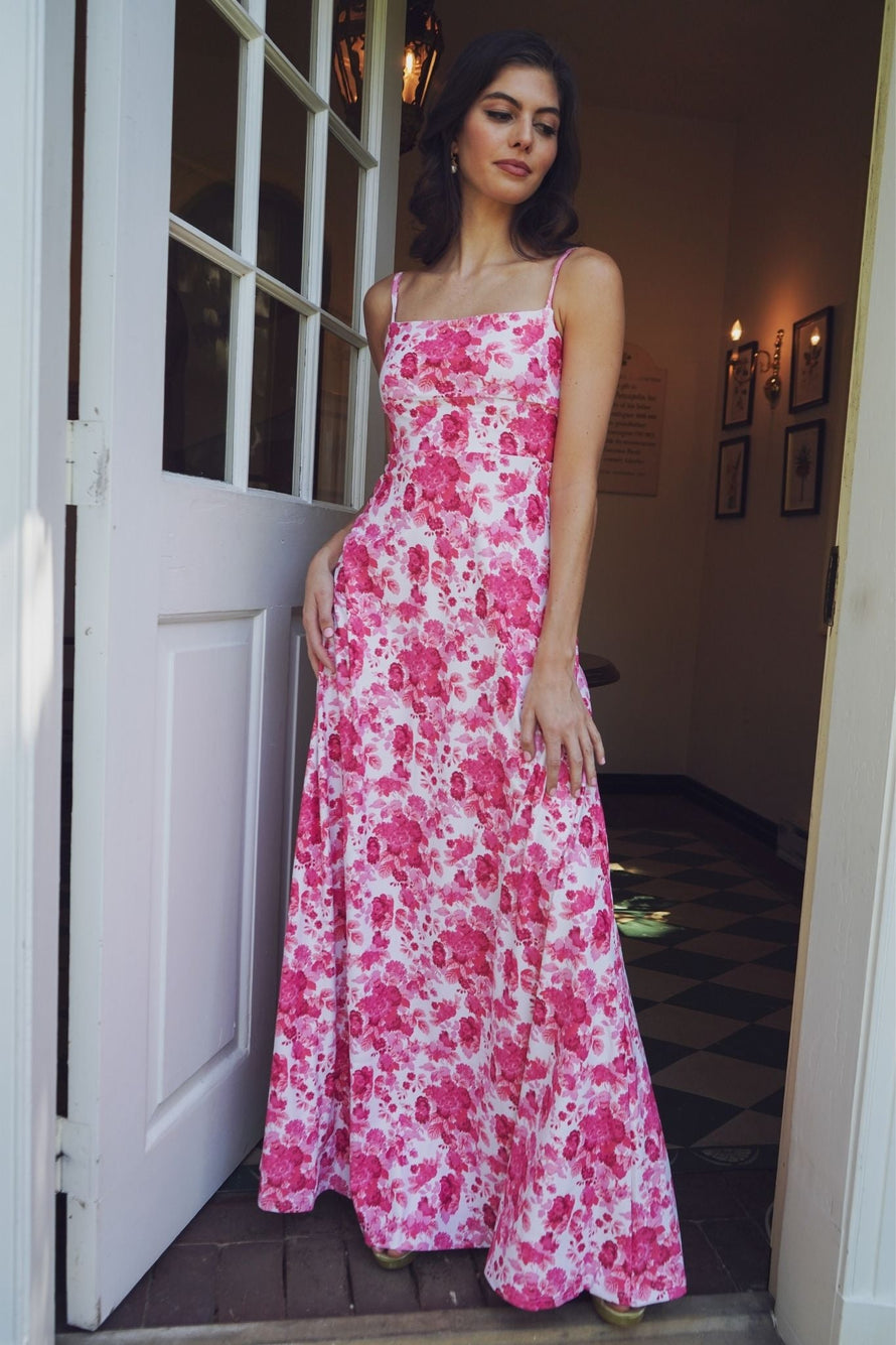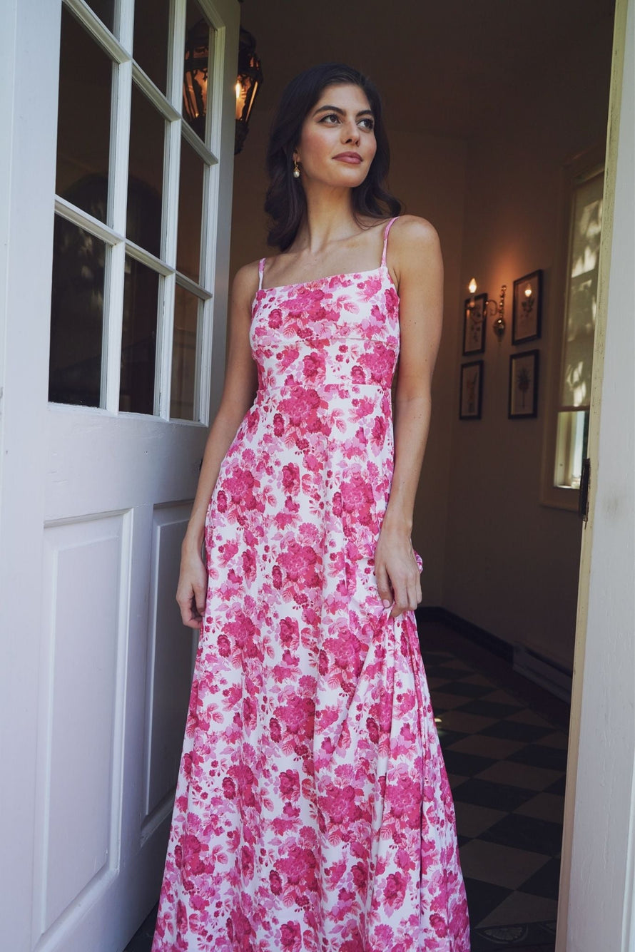 The effortless Brigette dress features a soft square neckline, a figure trimming waistband, and a sweeping floor-length skirt. The slim and delicate straps and dainty yet sexy dipped back make this dress the ultimate understated stunner! Sizing runs slightly big (and they stretch!)...if you are between sizes we recommend sizing down. - Made in our S&Q Signature Italian Matte Stretch fabric - 90% polyester 10% Spandex - 4-way stretch - Sizing runs slightly big (and they stretch!)...if you are between sizes we recommend sizing down- Model is wearing a size XS
