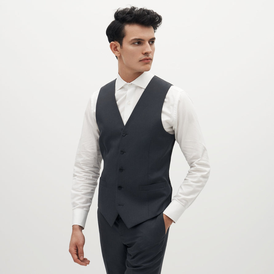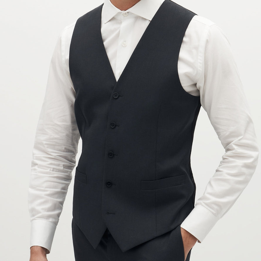 Complete your 3 piece look with our charcoal grey vest and stand out from the crowd even when your suit jacket is off.