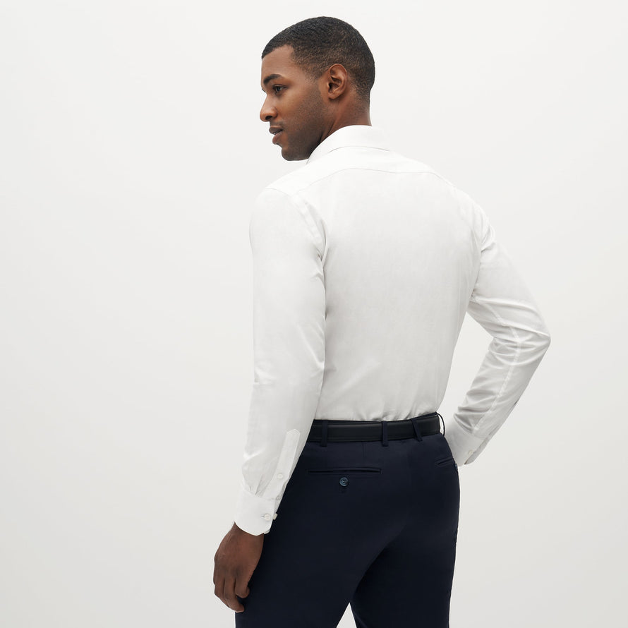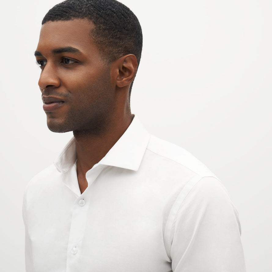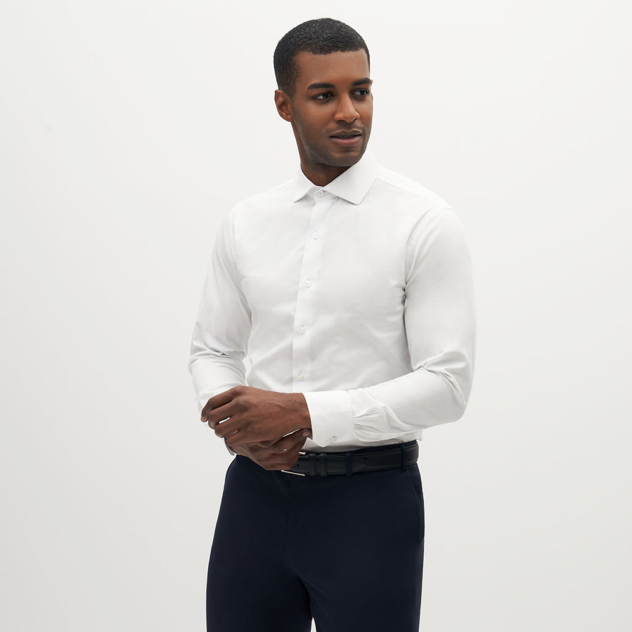 Our 100% cotton classic white shirt is designed with a formal spread collar & classic button cuff. Choose from one of our two fit options, Slim or Modern, to complete your look.