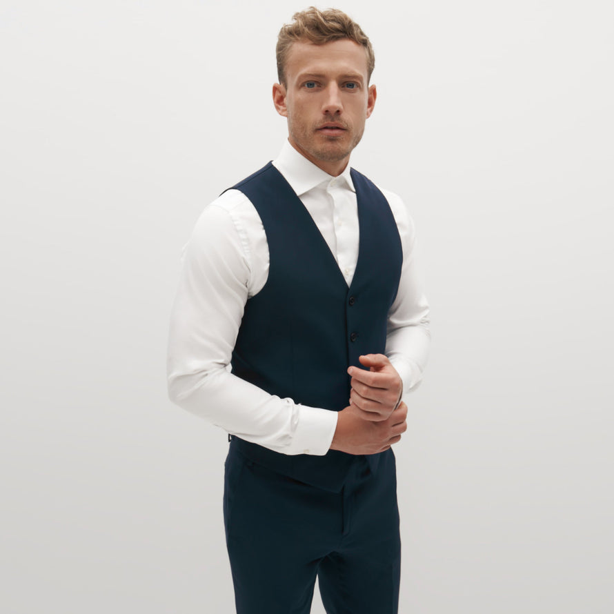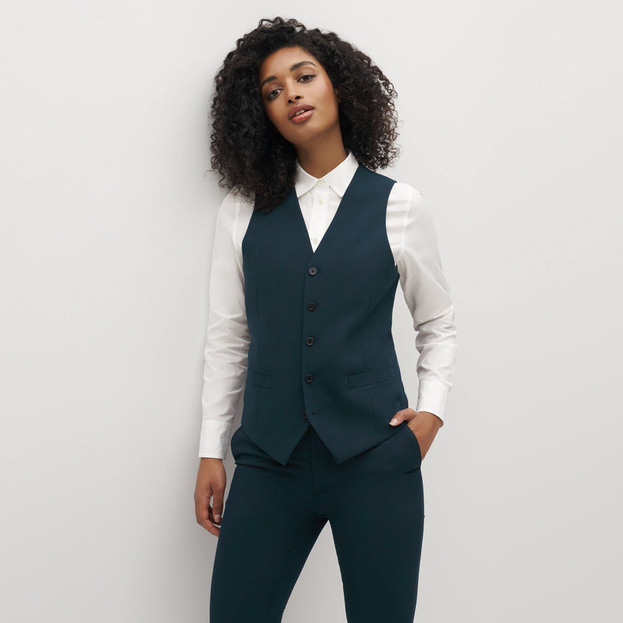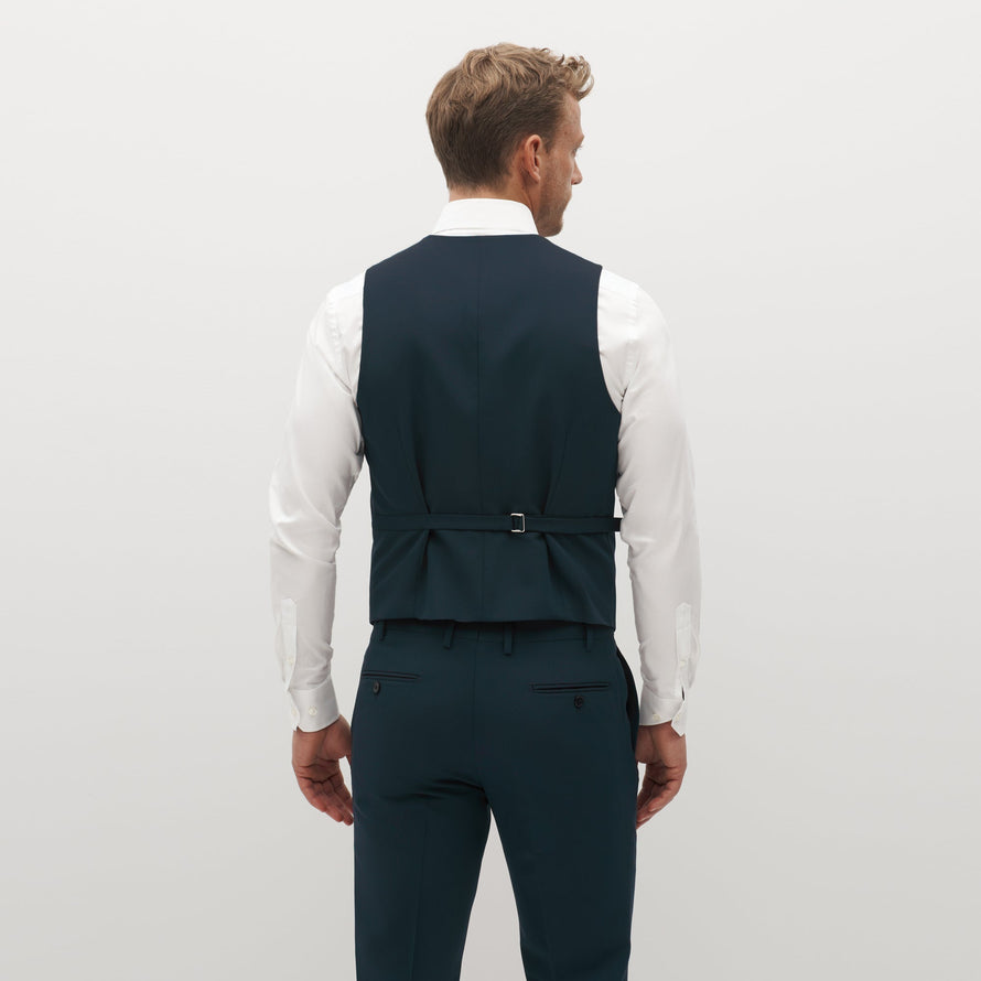 Make your look more dapper. Add a vest to complete your teal suit, or get creative with styling. Wear this deep, ocean-hued teal suit vest with tailored pants or make it casual—but still refined—with a pair of jeans. Whether you're going for a dressed-up look with a 3 piece suit or dressing it down for everyday, a suit vest balances on-trend and timeless.