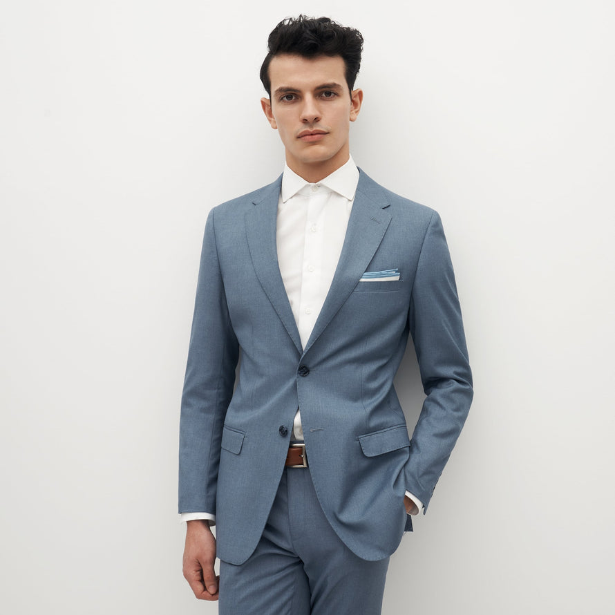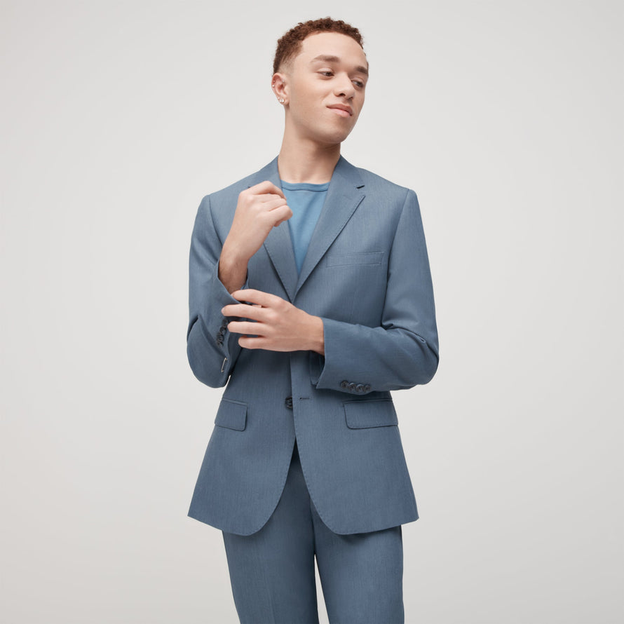 Crisp and cool, this light blue men’s blazer meets trendsetters and traditionalists in the middle. The result? A fresh classic. This is the light blue suit jacket men’s style has been seeking. A steel, blue-grey color lets the light blue blazer stand out in photos and in real time, while flexible Eco Stretch fabric keeps comfort key. No sweat with the light blue blazer men’s wardrobes need. Designed to seamlessly transition between color pairings and events. Plus, complete the look with the Men’s Light Blue Suit Pants or style this suit jacket separately to get even more wear.