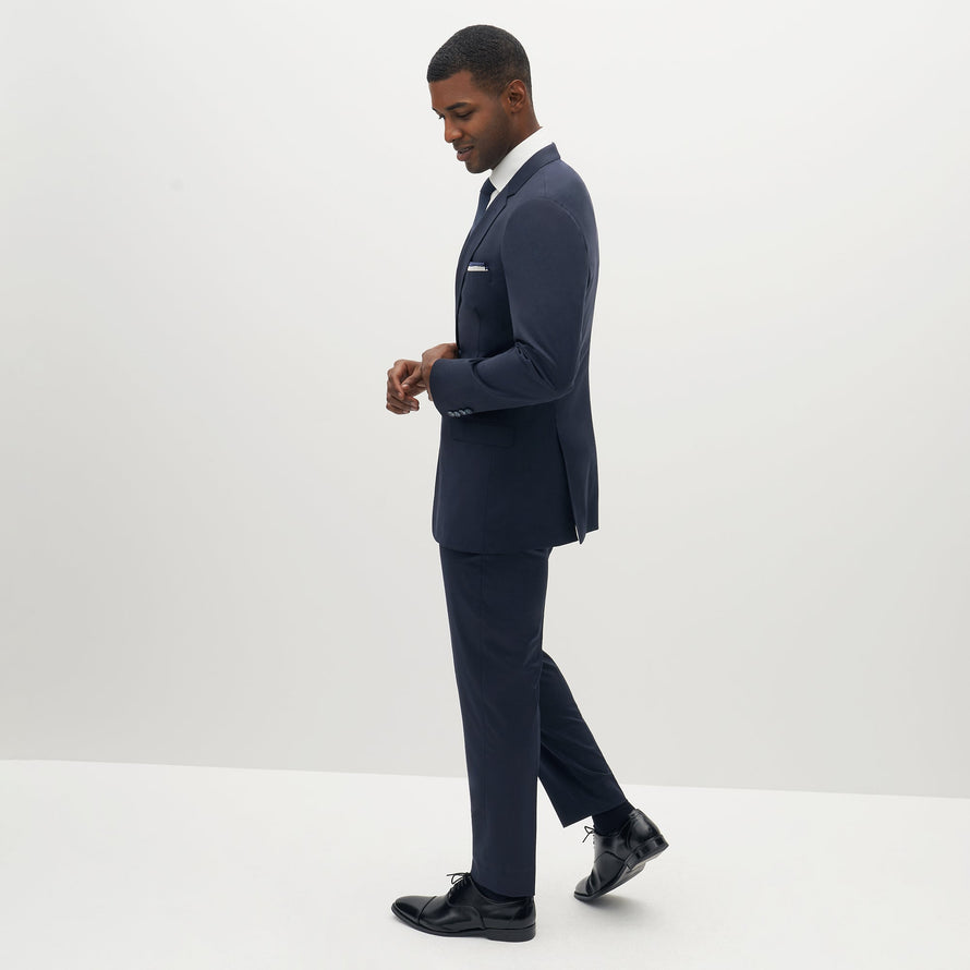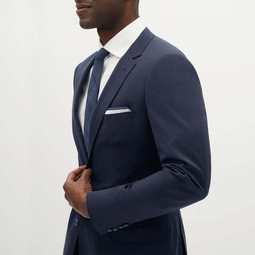 The Men’s Navy Blue Suit Jacket is about to be the sharpest tool in your wardrobe. Our navy suit jacket is a dark blue that’s both saturated and subtle, perfectly fit for any occasion–and for the everyday. Constructed with smooth, flexible fabric, this is the best men’s navy blazer, keeping a focus on comfort. This men’s navy suit jacket is wedding style idealized, and so much more–a classic neutral that can be romantic or neat, formal or relaxed, and always versatile. Designed to be a crisp look outdoors; timeless worn inside a venue; and powerful at the office, this navy blazer is the dark blue suit jacket suitable for it all.