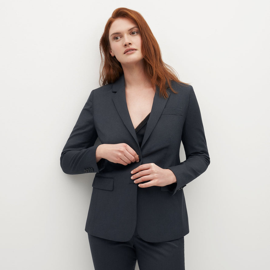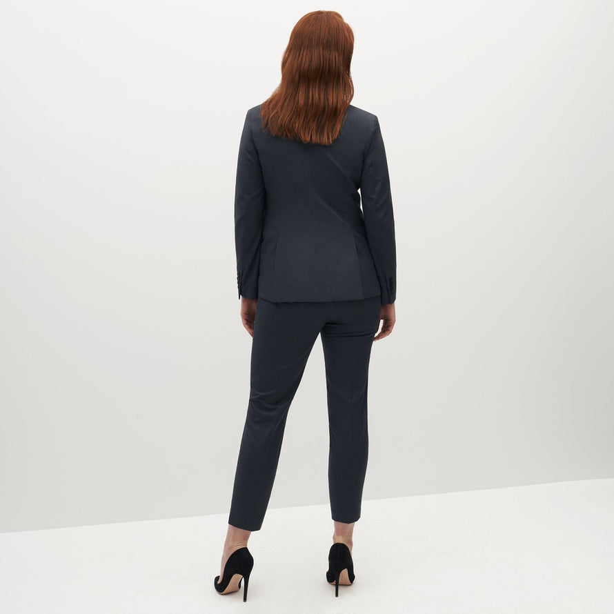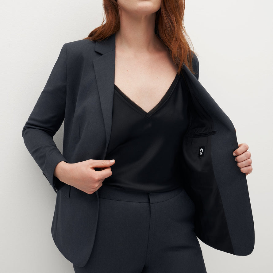 The Women’s Charcoal Grey Suit Jacket means business. A fresh take on the darker standbys like black and navy, a charcoal grey blazer gets the job done and transitions from the everyday to wedding wear and far beyond in no time at all. Truly neutral, this dark grey suit jacket makes women’s outfits easy: pair any color to coordinate, depending on your setting. With classic style from a notch lapel and a tailored look, plus utilitarian details like pockets and Eco Stretch fabric, this dark grey blazer is women’s ultimate style savior.