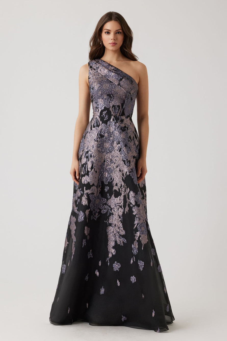 Floral Met Jacquard Pleated One Shoulder Gown