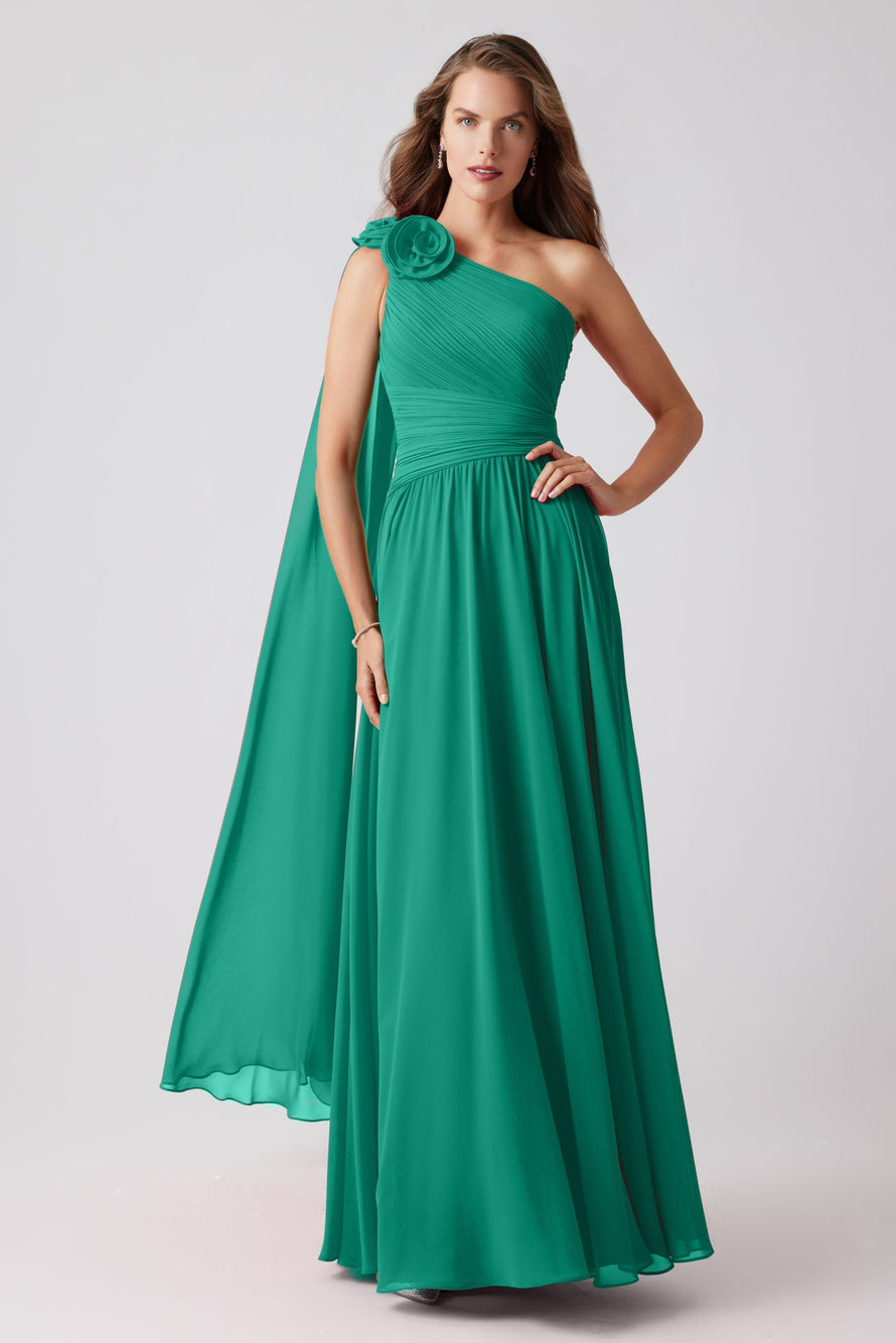 PLEAT CHIFFON FLOWER DRAPE SHOULDER GOWN
