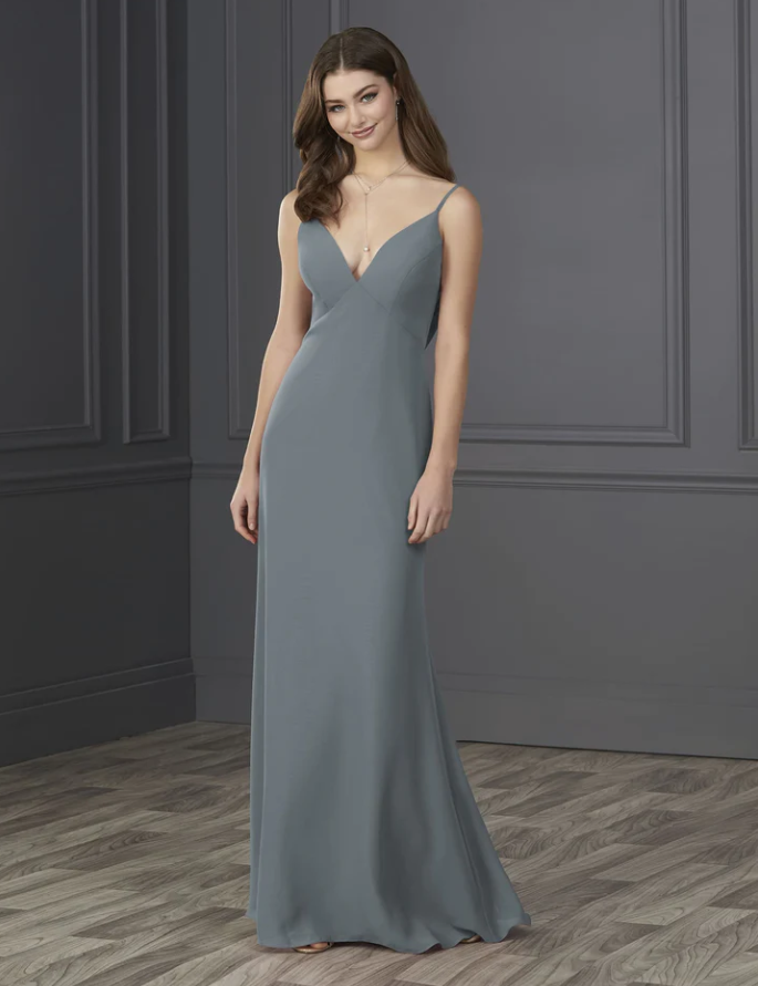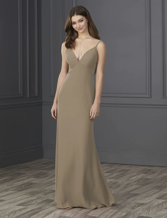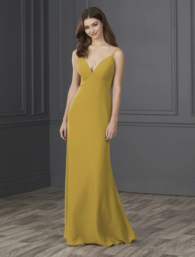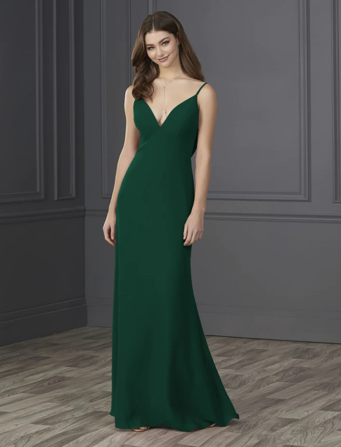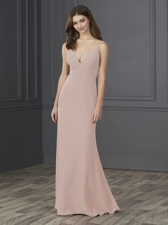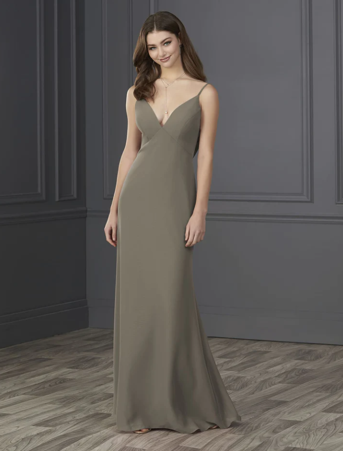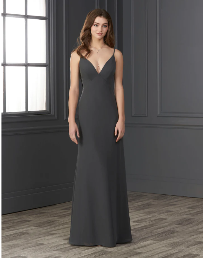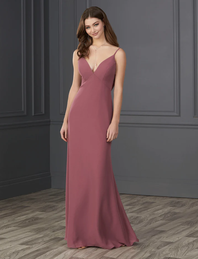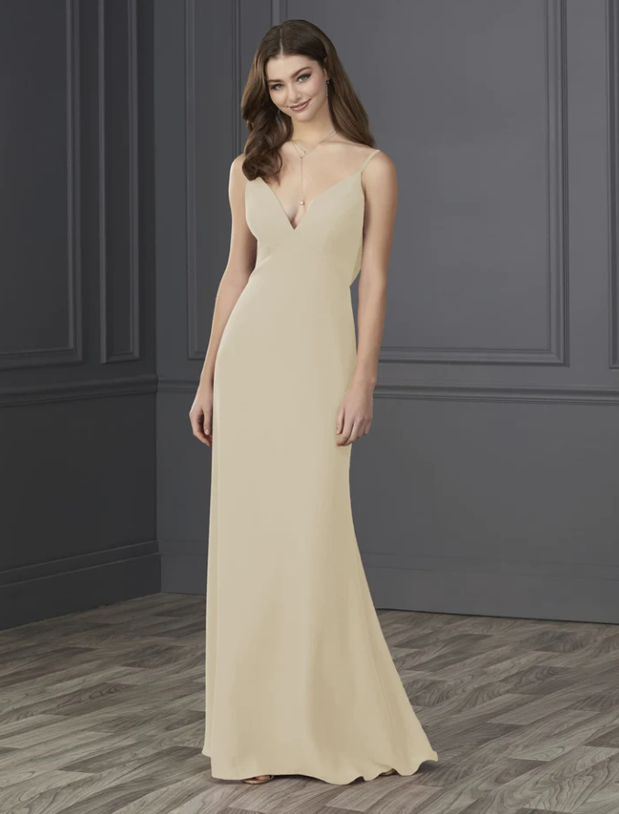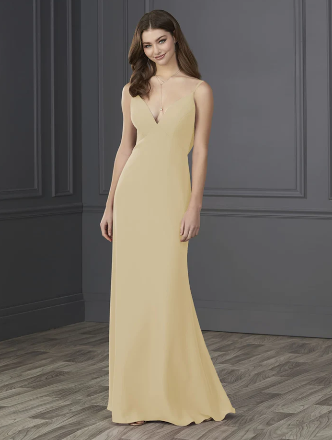 You will be wowed by this empire spaghetti strap chiffon with soft a-line and low cowl back.