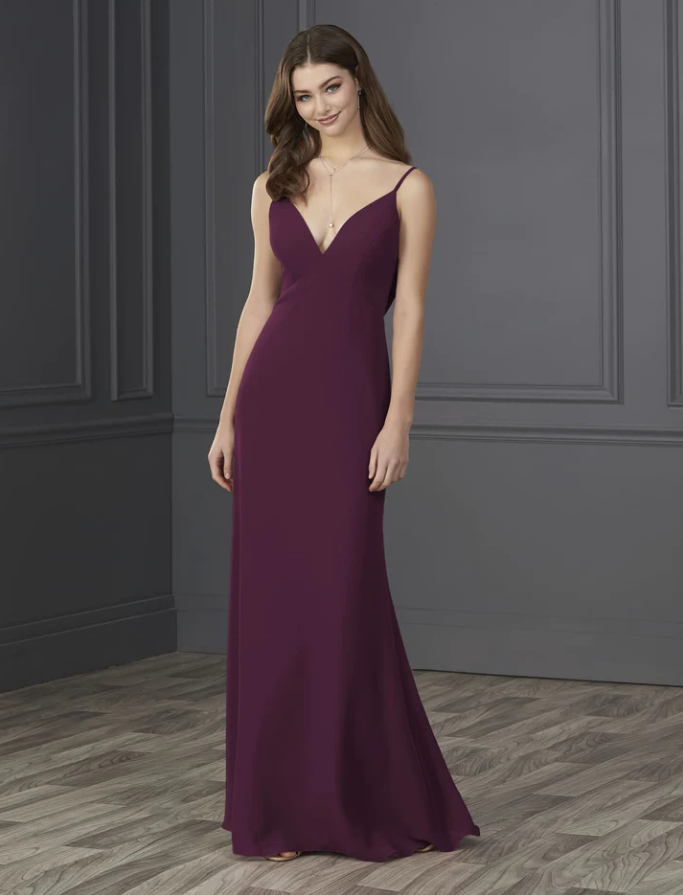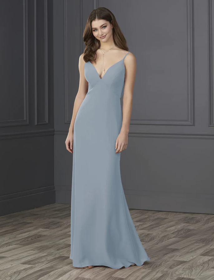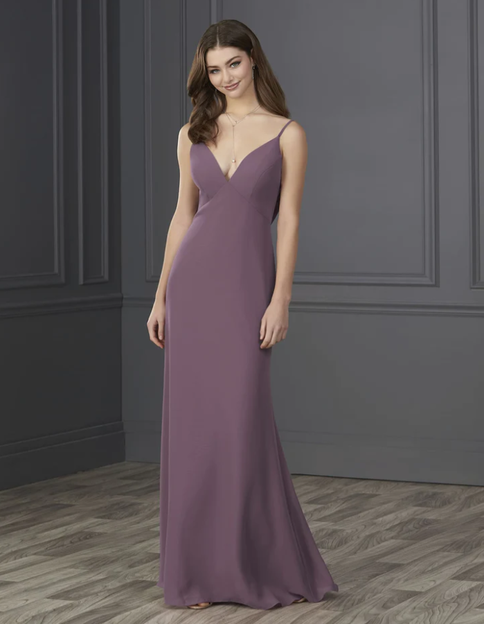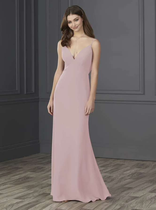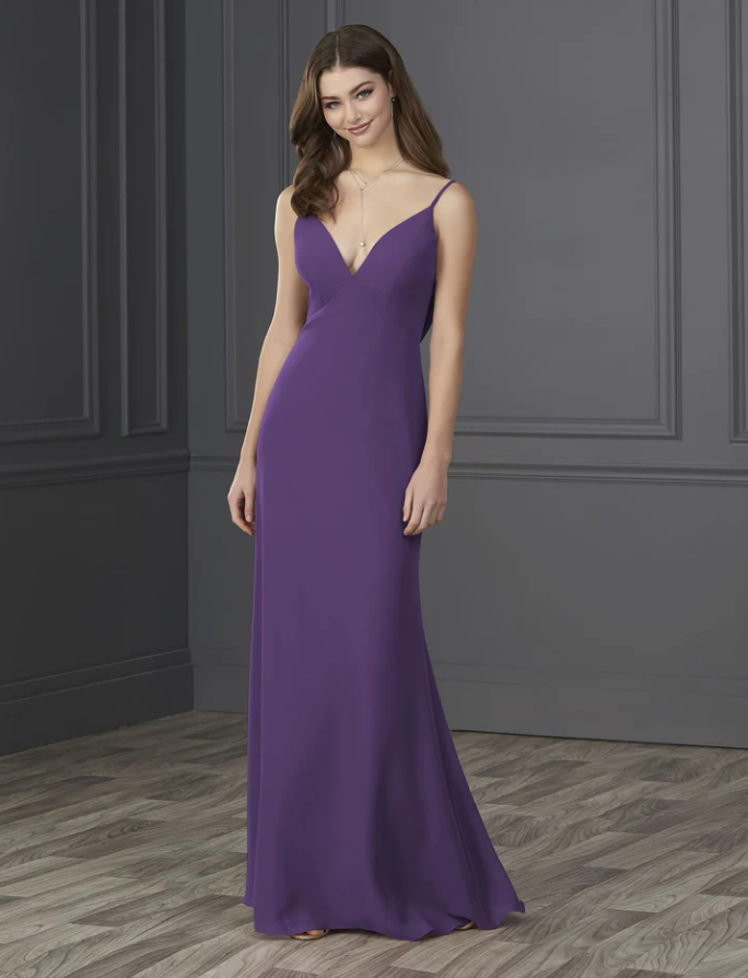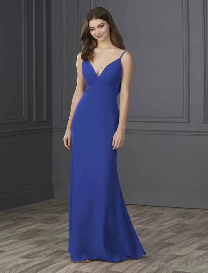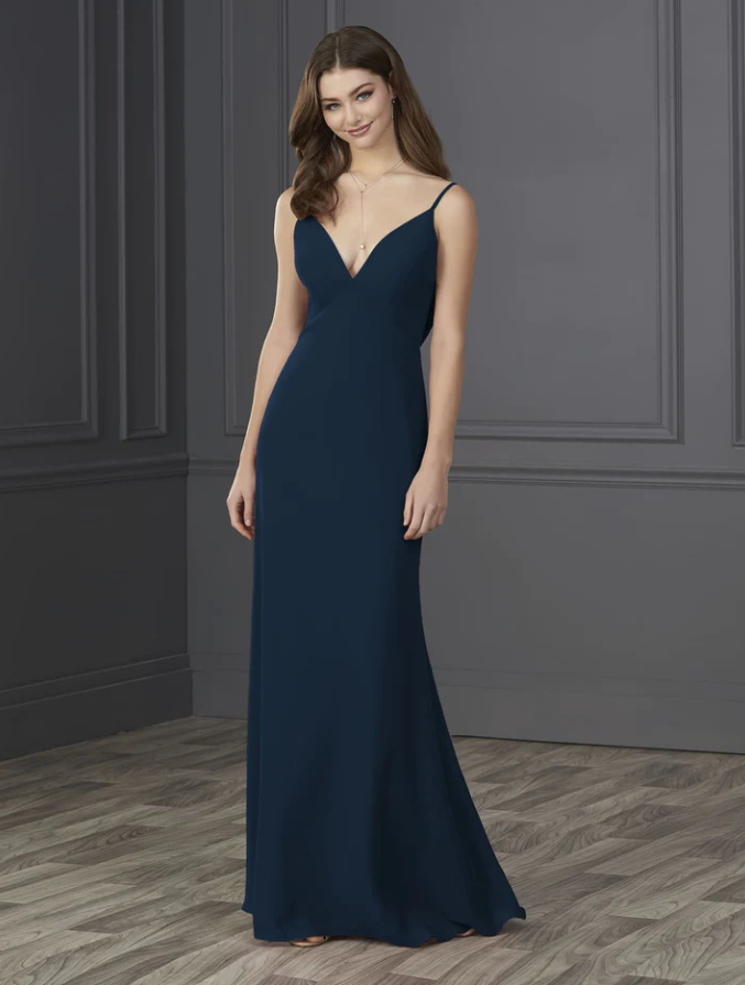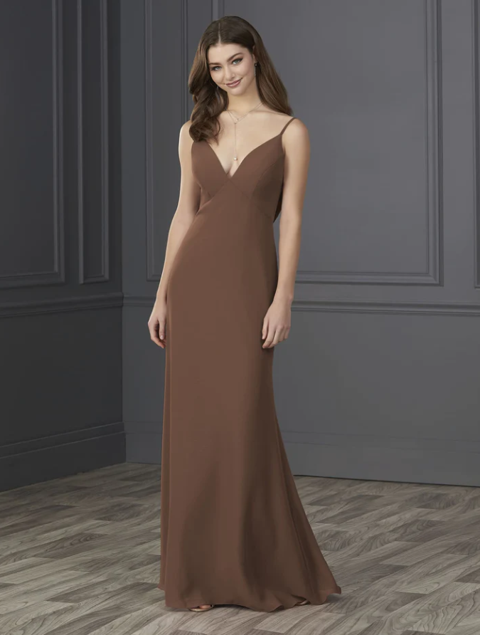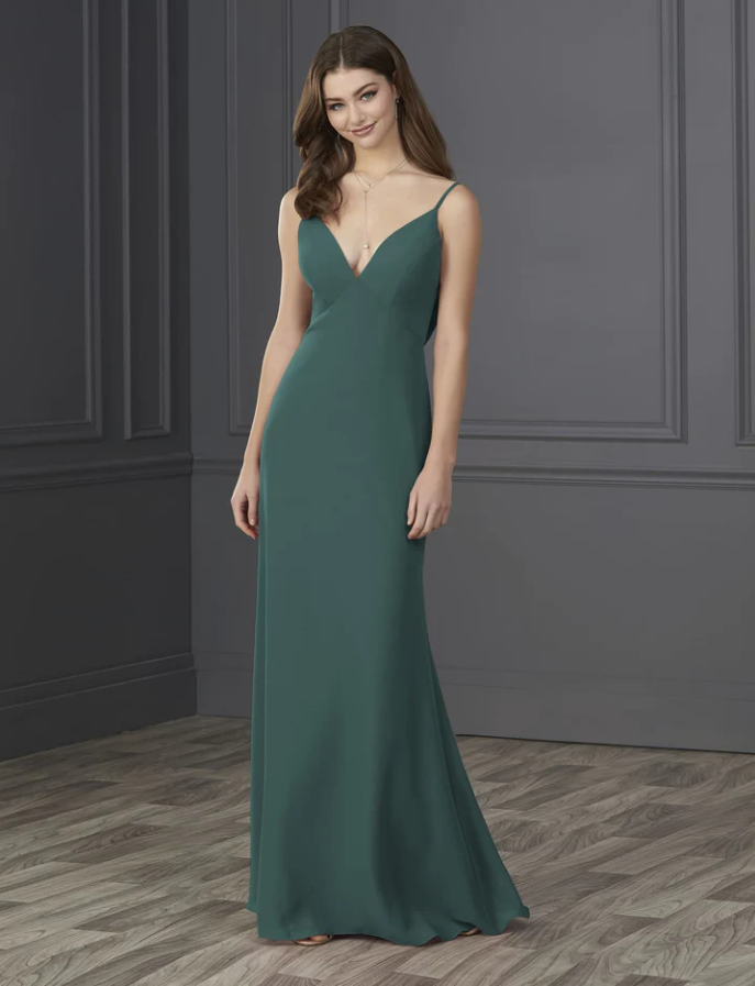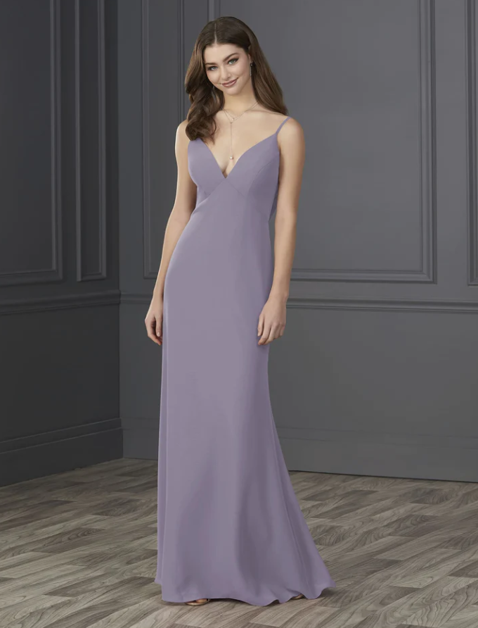 You will be wowed by this empire spaghetti strap chiffon with soft a-line and low cowl back.