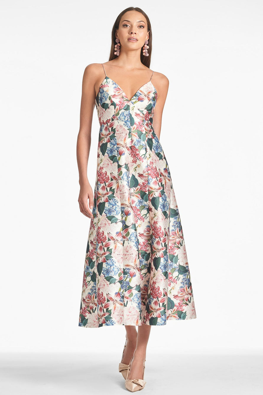The fabulous and flirty Allesandra is a fit-and-flare midi dress crafted from our signature Stretch Mikado fabric, ensuring a flattering fit. The elegant Antico Botonico print adds a romantic touch to the sophisticated and feminine silhouette.