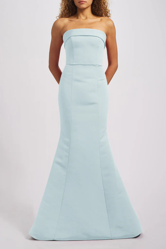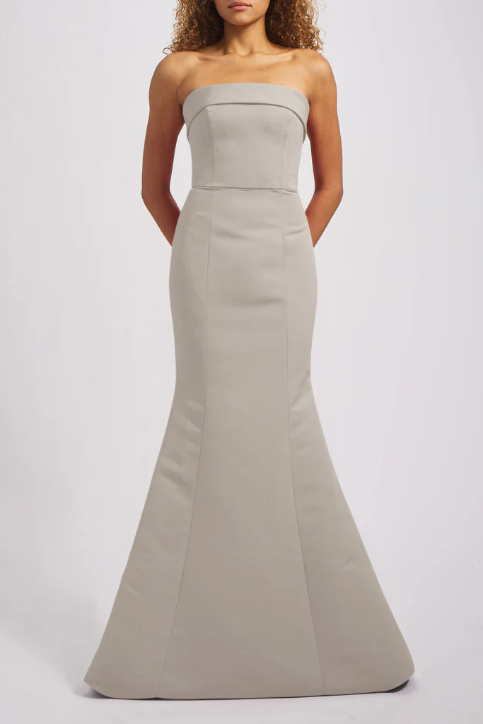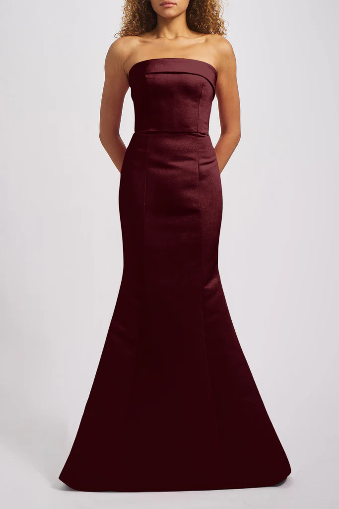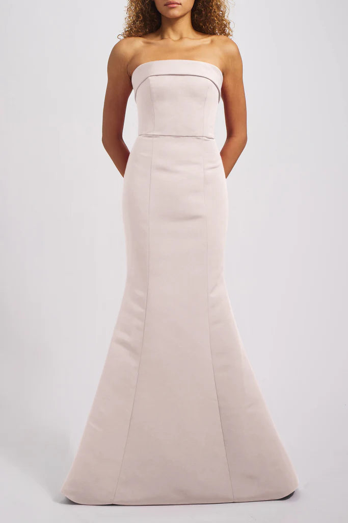 The Jaylin is a classic gown but has an extra element of sophistication in our textured Faille fabric featuring a foldover strapless bodice, natural waist and trumpet skirt, this stylish gown is a standout.
