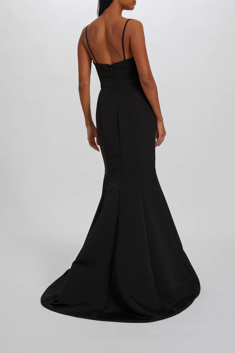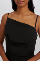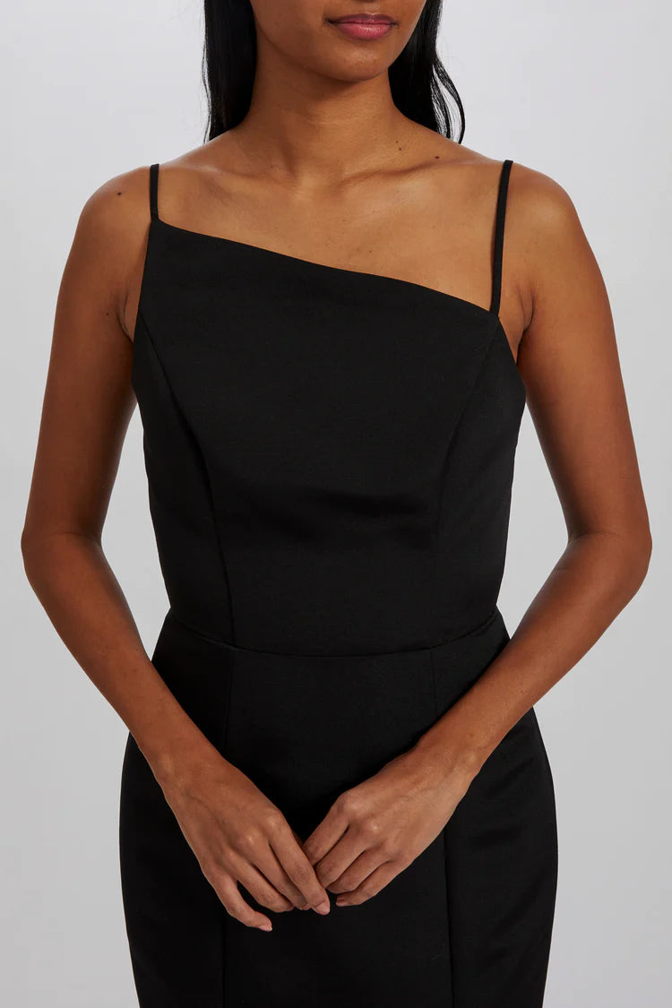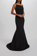Elegantly constructed in Faille fabric, the Lux bridesmaid dress features an asymmetrical neckline with spaghetti straps and a sophisticated trumpet skirt making this dress simple yet eye catching.