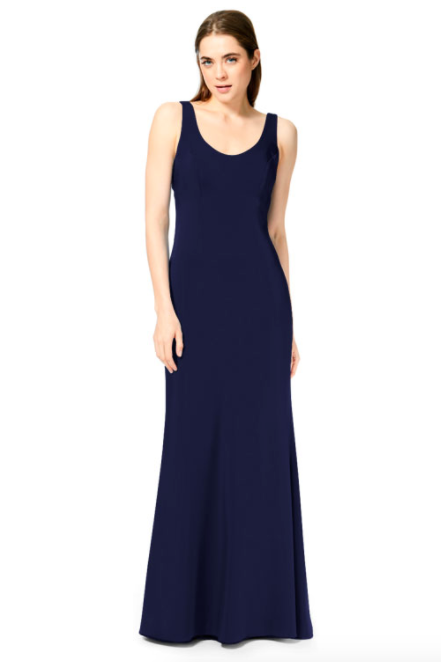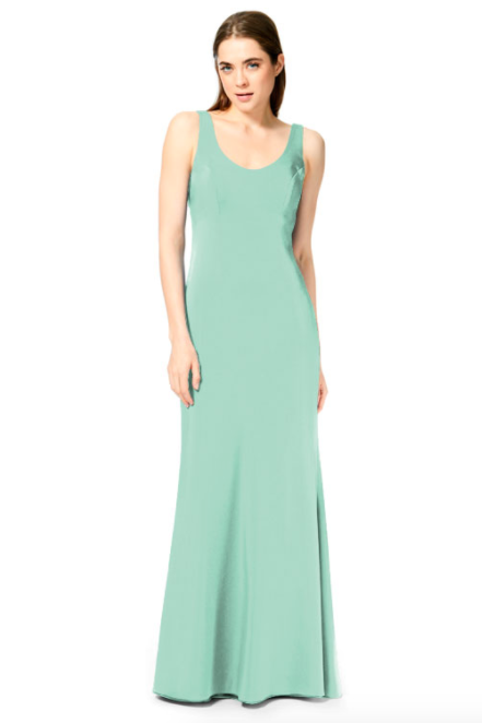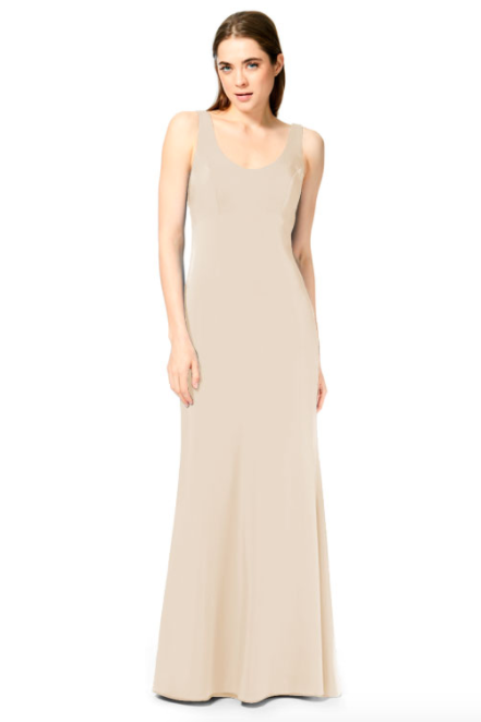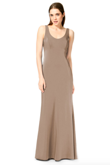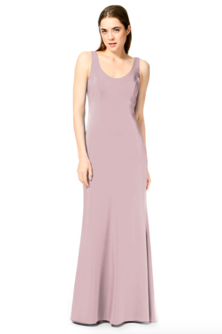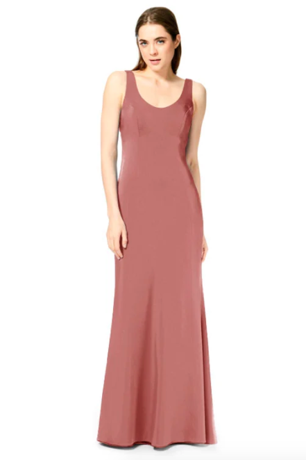 Bari Jay Bridesmaid Dress 1887 - Wide strap slim-fit stretch dress with a pleated low back and center back zipper.