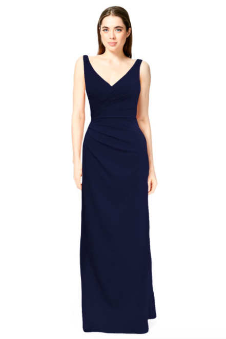 Bari Jay Bridesmaid Dress 1888 - Wide strap slim-fit stretch dress with pleated bodice and full zipper at center back.