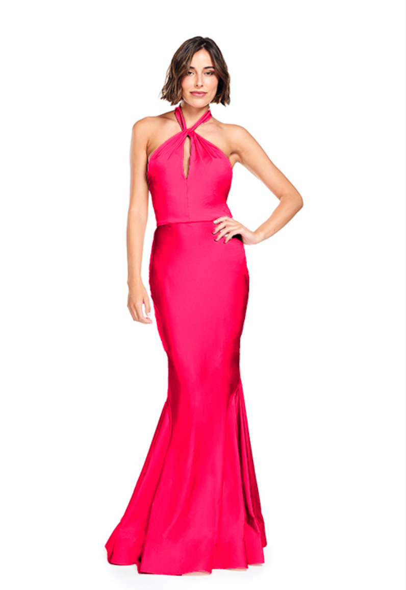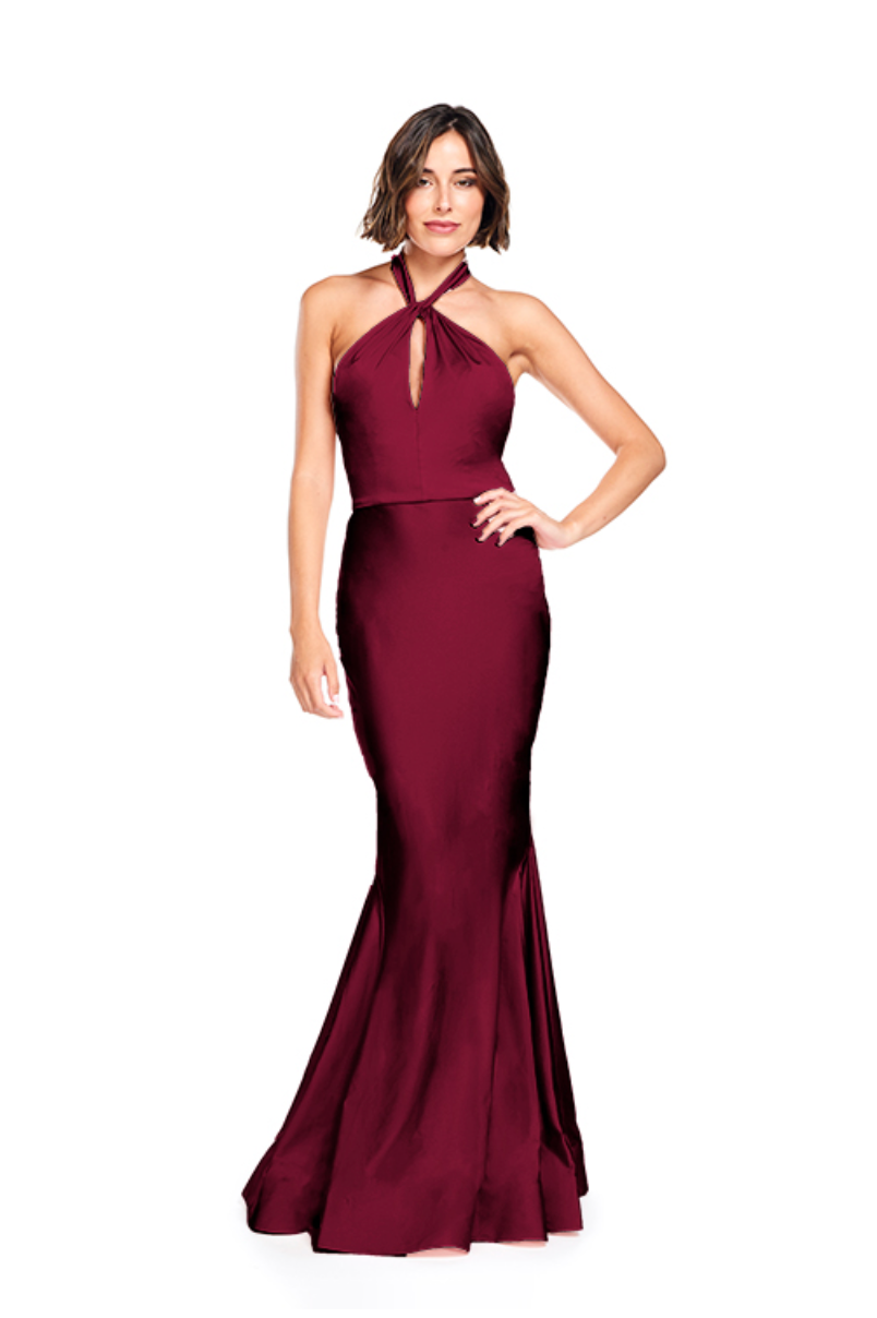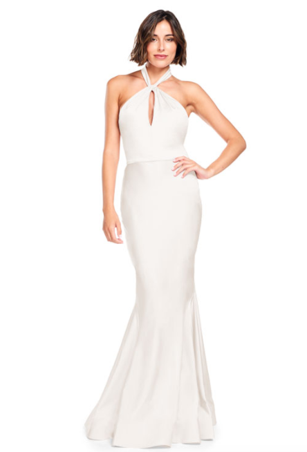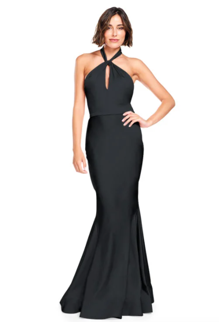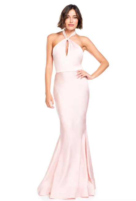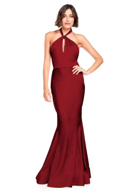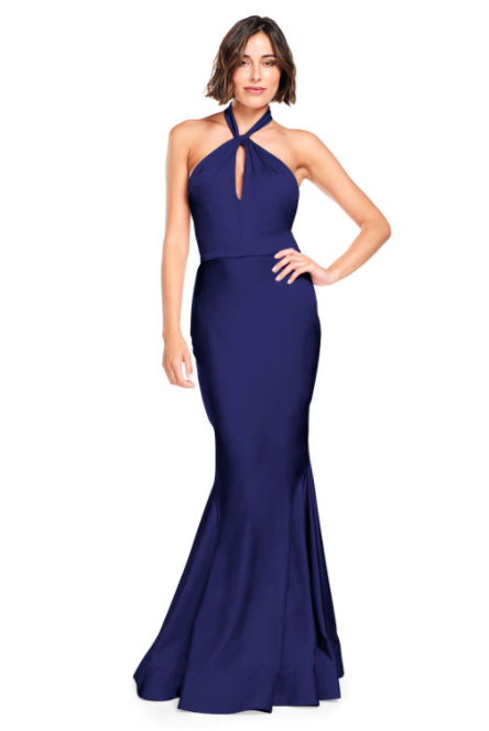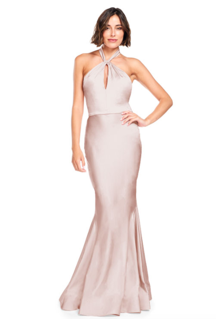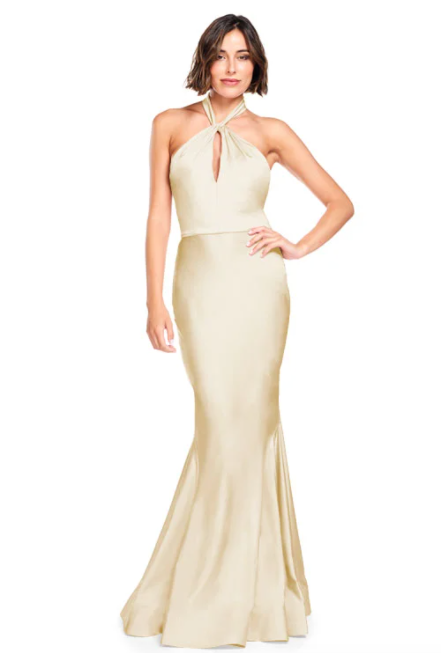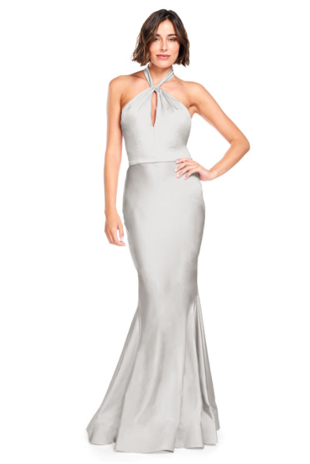 Bari Jay Bridesmaid Dress 2003 - Keyhole halter bodice with a mermaid skirt and a horsehair hem. 4-way Stretch for an effortless fit. This style includes self knee length lining.