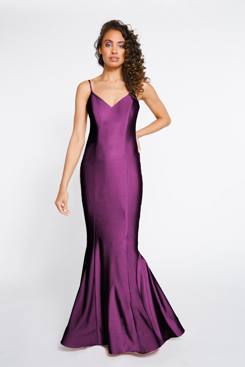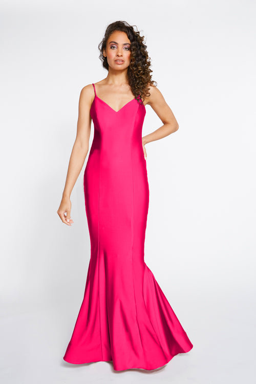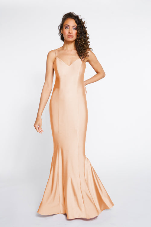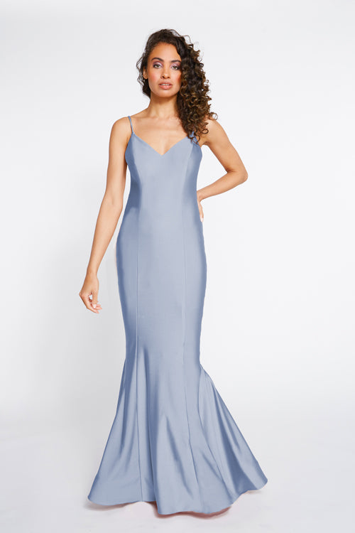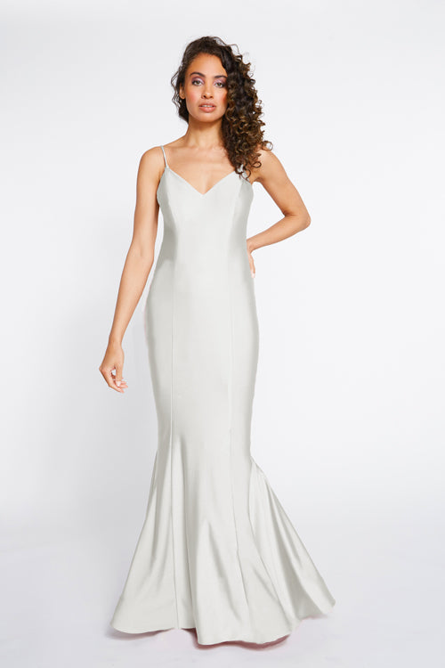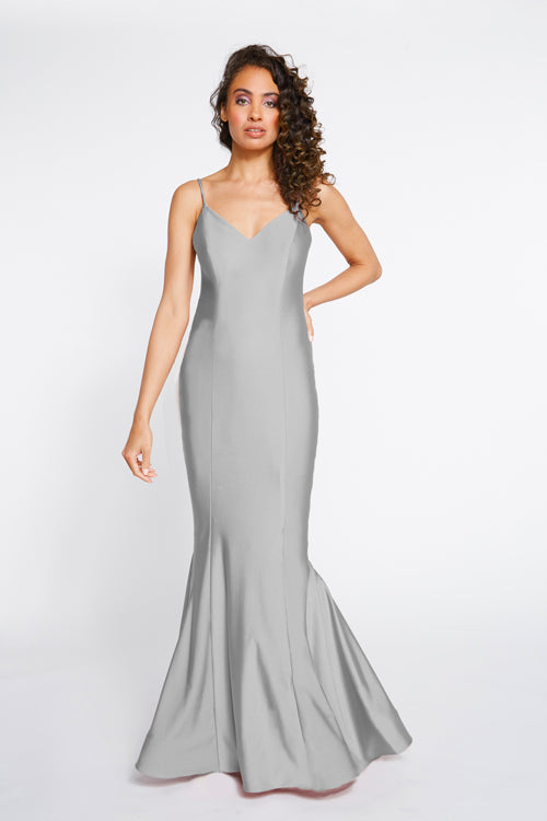 Bari Jay Bridesmaid Dress 2254. Spaghetti strap princess seam dress with adjustable bow back straps. The colors displayed on our website may vary from screen to screen and will differ from the actual fabric color.