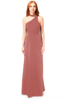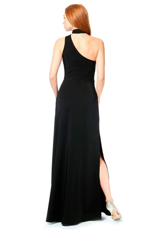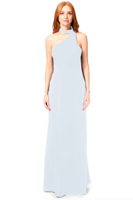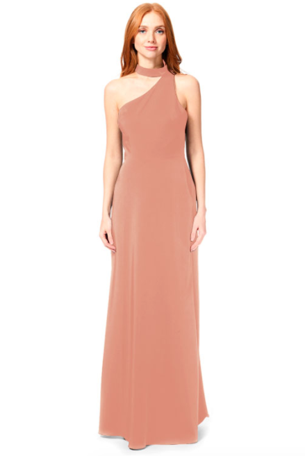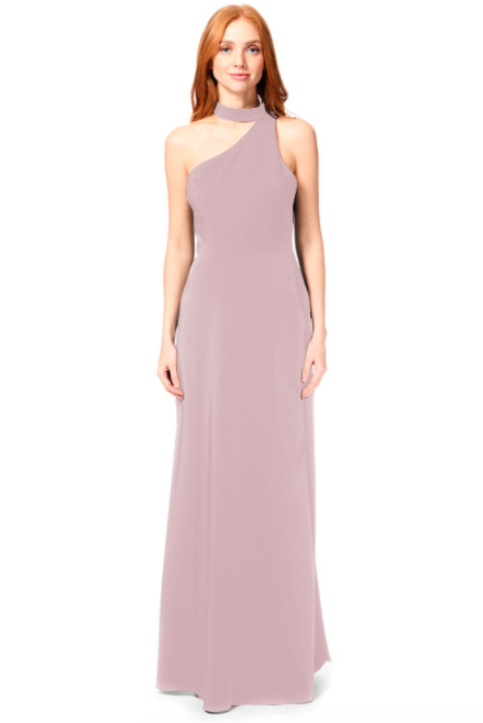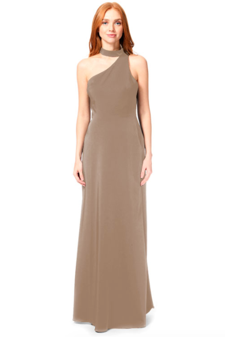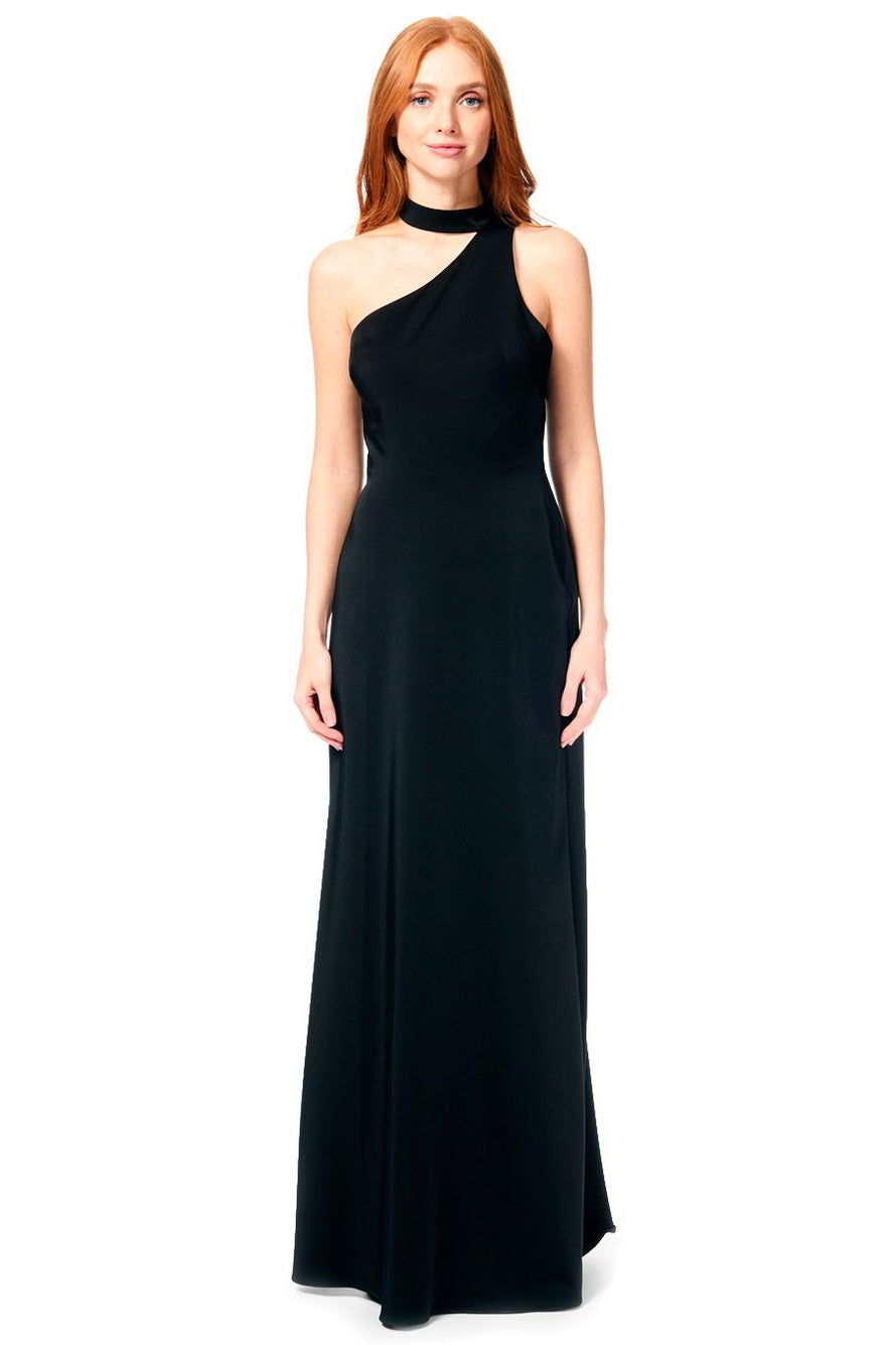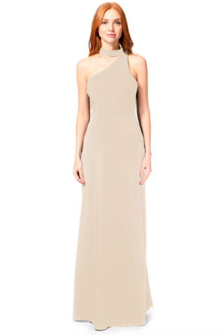 Bari Jay Bridesmaid Dress 1883 - One-shoulder choker collar stretch dress with princess seams, and side slit.