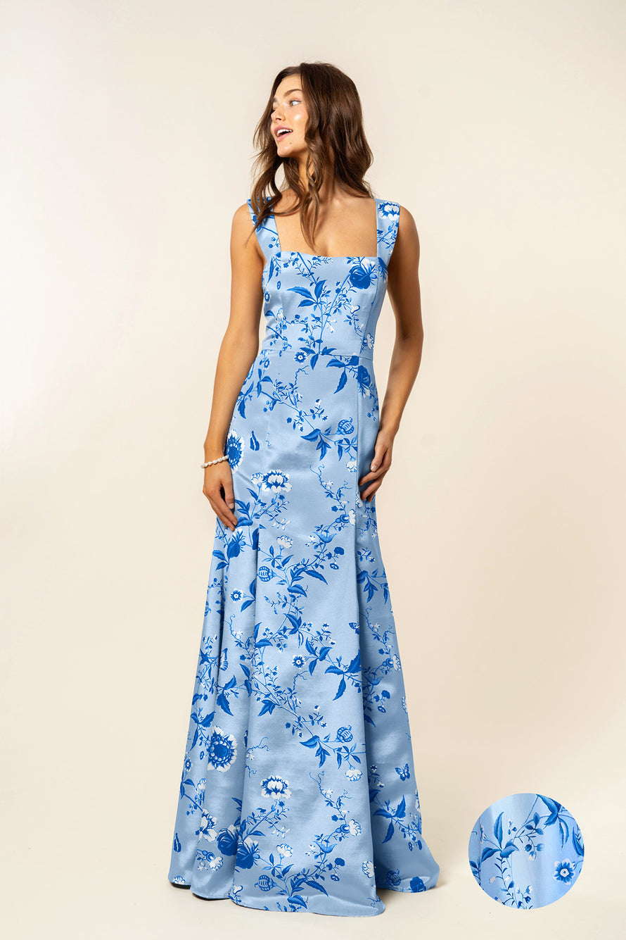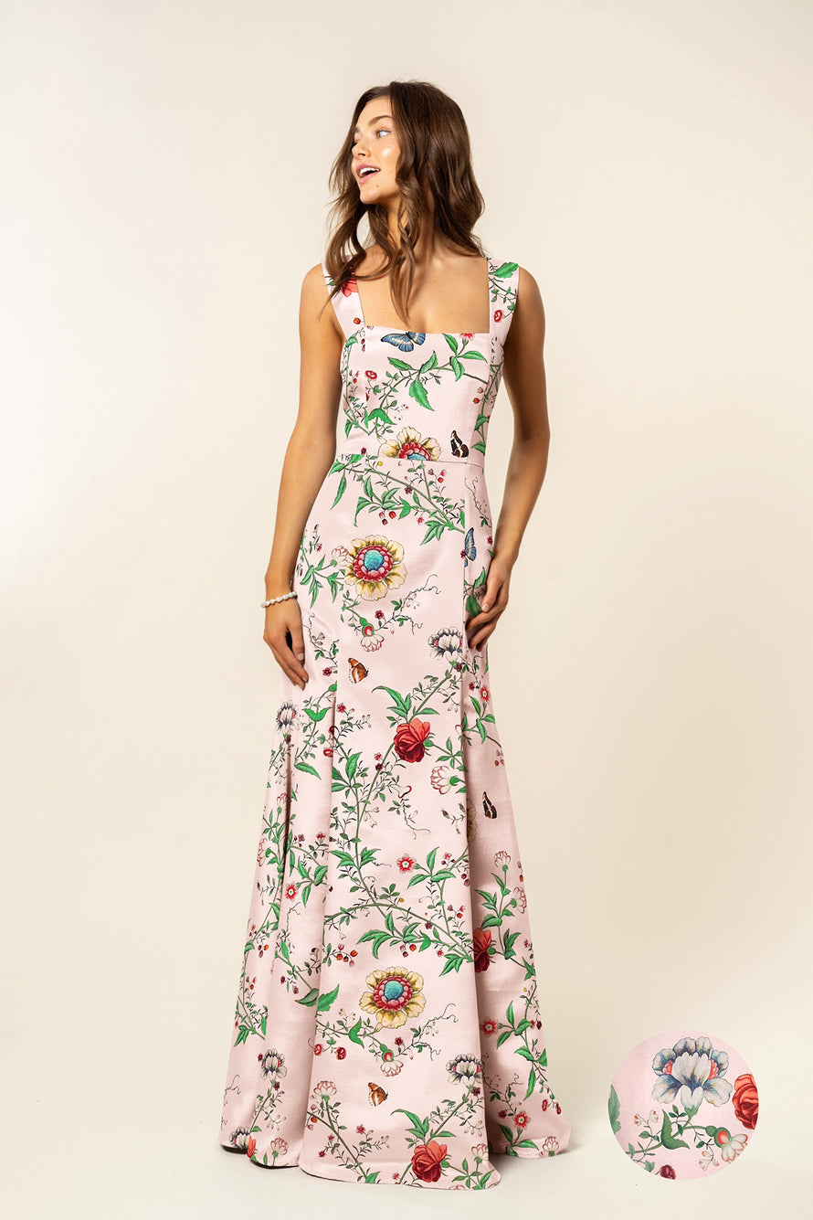 Beckett Bodice with Trumpet Skirt in Floral Vine Sateen