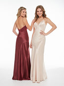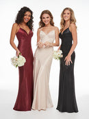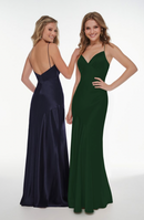 This fashion forward, modern slip dress is made of our new, slipper satin. The body and skirt of this gown have been cut on the bias and lined in stretch jersey for a slinky, sexy look.