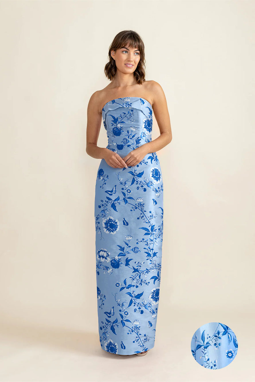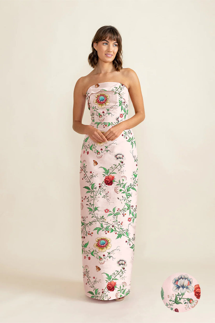 Eva Bodice with Straight Skirt Long in Floral Vine Sateen
