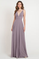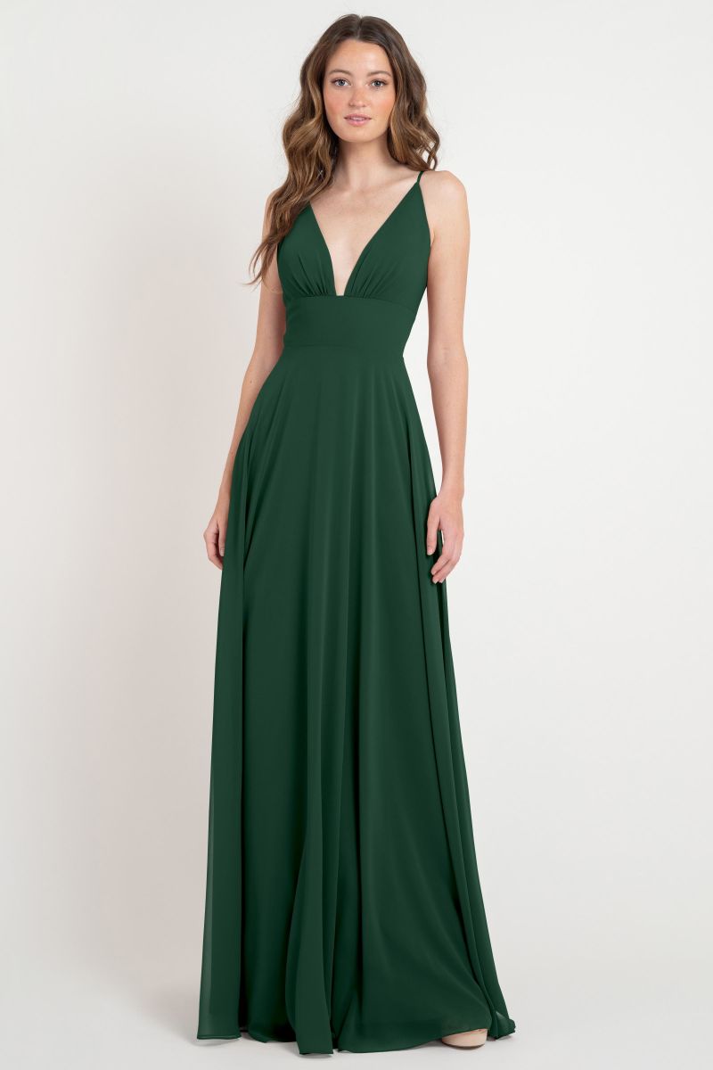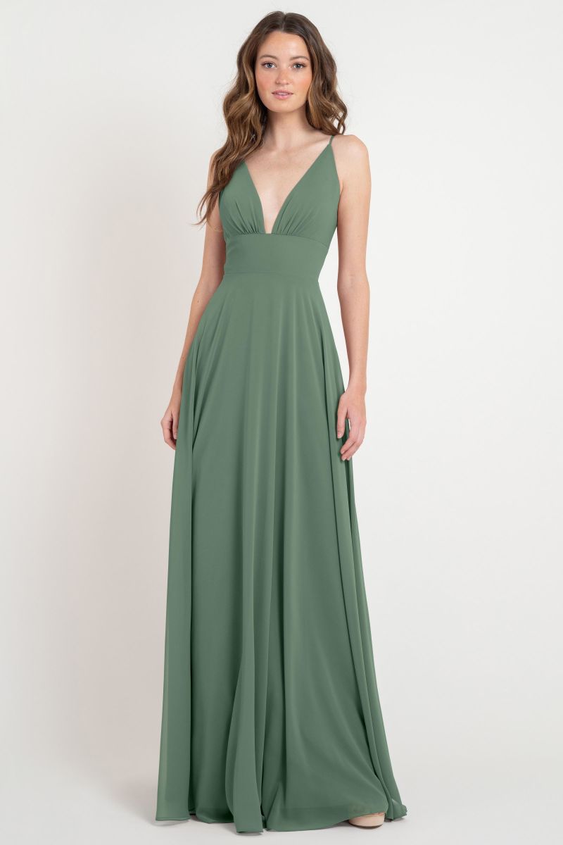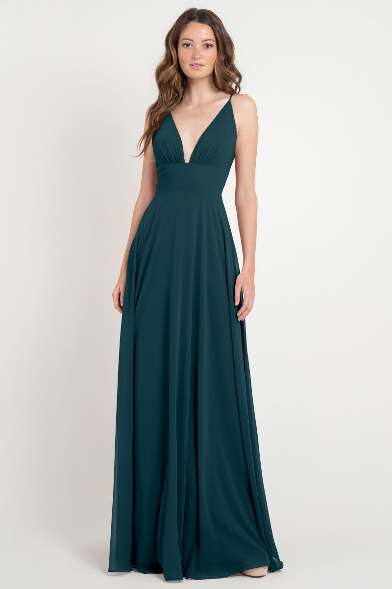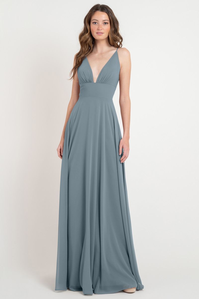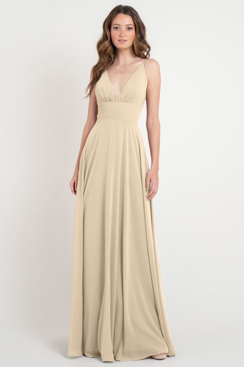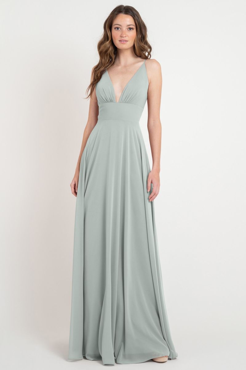 If you're aiming for sheer beauty, the Brady dress is the ideal choice, featuring a breathtaking V-neck and a flowing A-line chiffon skirt. The Brady is both simple and chic!