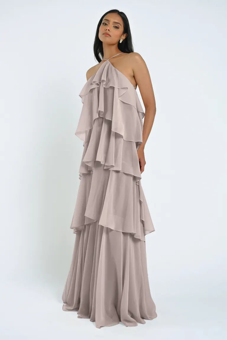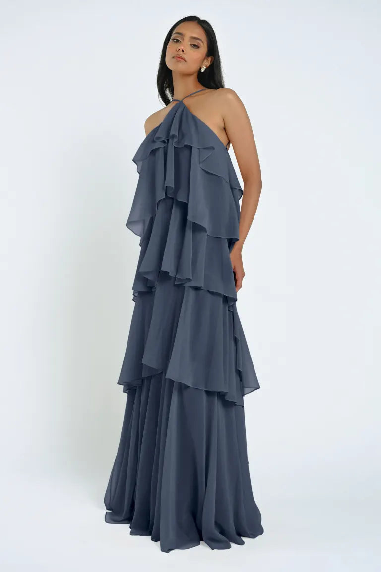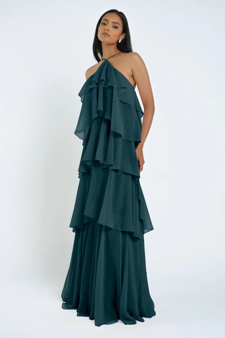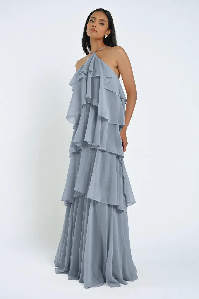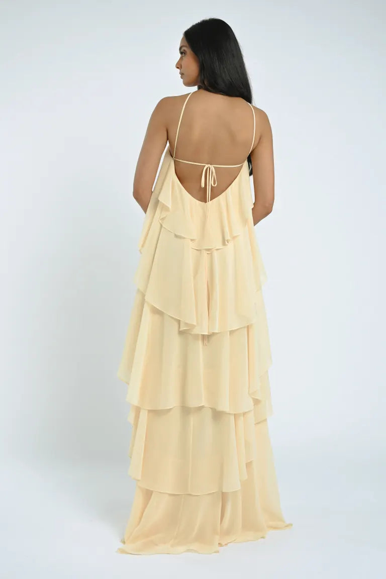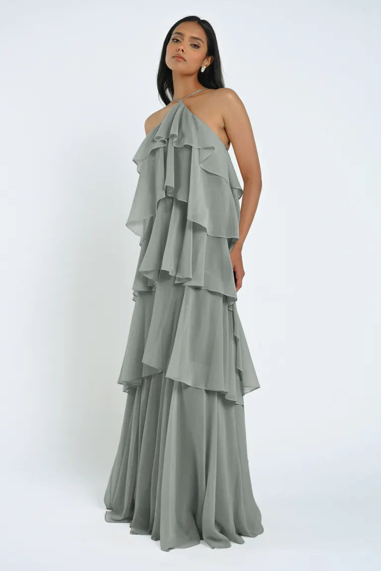 The Farley dress is a fun and flirty option for any event. Cut in layers of sheer, drapey chiffon, she moves beautifully for an effortless feel.