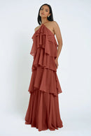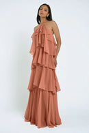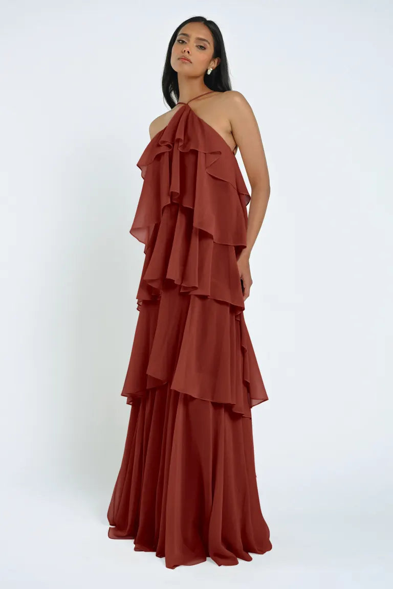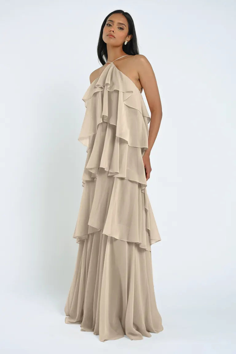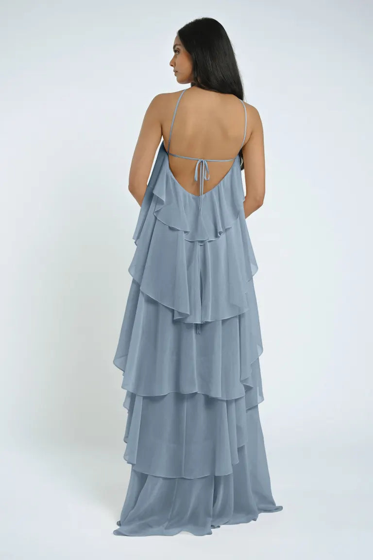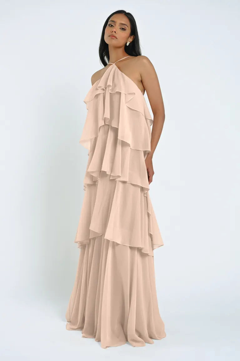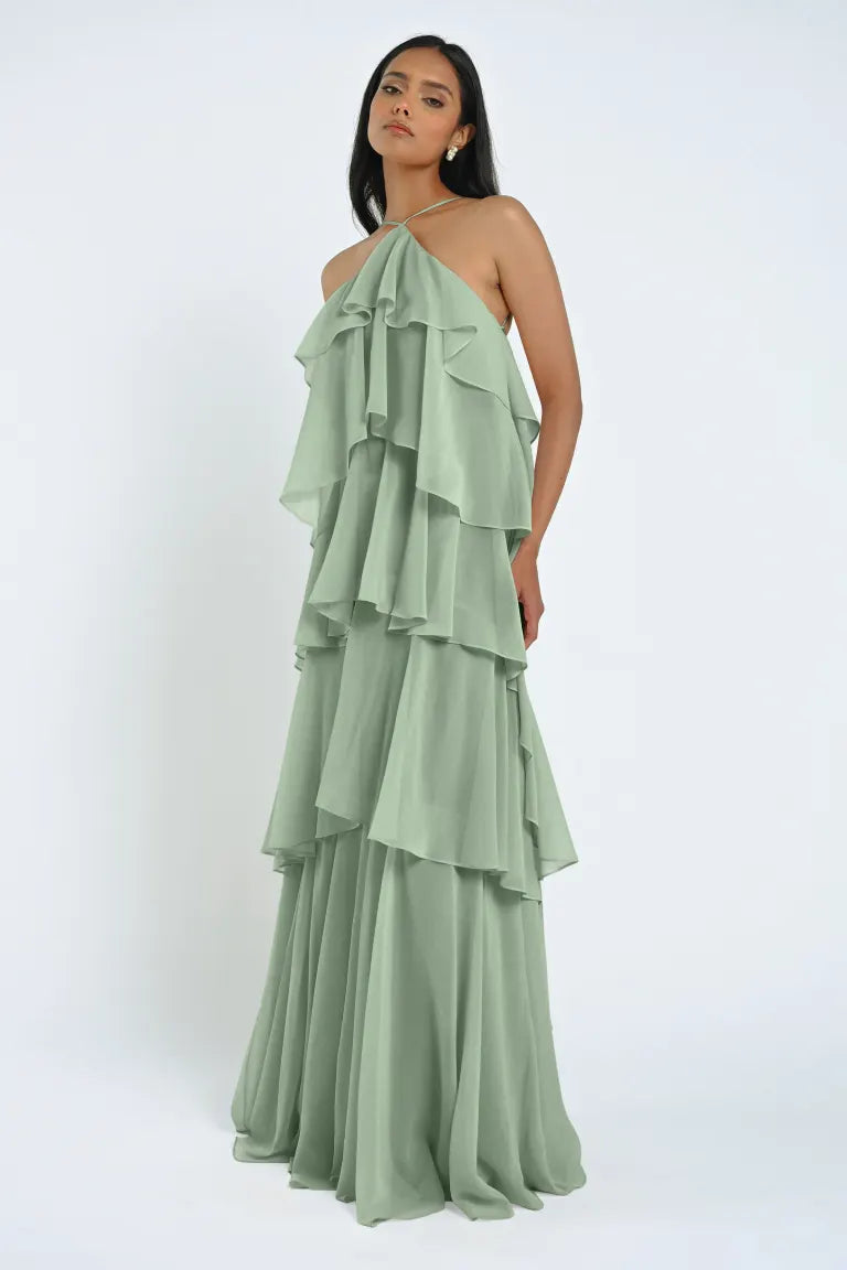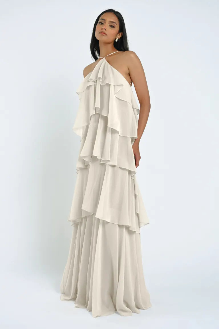 The Farley dress is a fun and flirty option for any event. Cut in layers of sheer, drapey chiffon, she moves beautifully for an effortless feel.