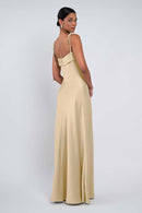 The Landry dress strikes the perfect balance between clean lines and sweet details. Spaghetti straps tie at the shoulders for easy wearability and a touch of flirtatiousness, while the bias cut body and sleek neckline band keep her chic and modern.