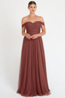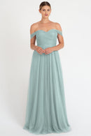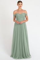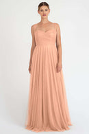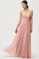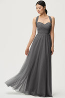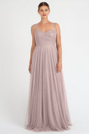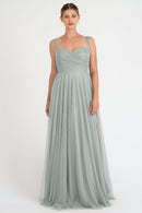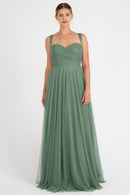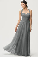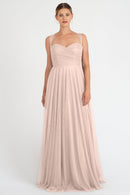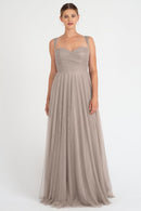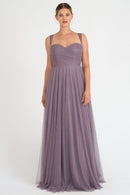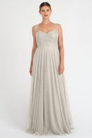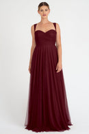 The Julia convertible tulle bridesmaid dress showcases a sweetheart neckline, a wrapped bodice, and a flattering circle skirt. What makes this dress truly versatile is the inclusion of two back panels and detachable straps, which offer you the freedom to create various necklines, strap options, and back details, allowing you to customize your look to suit your style and preference.