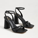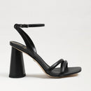 The edgy and chic Kia Block Heel Sandal features an ankle strap buckle closure, black leather and a 3.5 inch block heel with a synthetic insole.