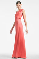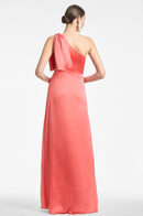 The Chelsea gown in vibrant coral features a crinkle georgette sleeve cut on the bias, with an asymmetric seam at the waist that enhances your curves. A hand-tucked, stitched bow adorns the shoulder, adding a touch of elegance. Our bridesmaid dresses are crafted with the idea that they should be worn multiple times and cherished, as we believe a stunning dress deserves to be enjoyed again and again.