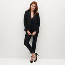 The new little black dress: enter, the Women’s Black Tuxedo Jacket. This dress alternative does even more, from formal functions to trendy outfits, wedding wear, professional looks, and back, making this black tuxedo blazer women’s wardrobe hero. Classic tailoring, upgraded, makes this the perfect women’s tux, with a shawl lapel, a single-button front to elongate your figure, and satin accents. This women’s black tuxedo blazer is your next fashion favorite.