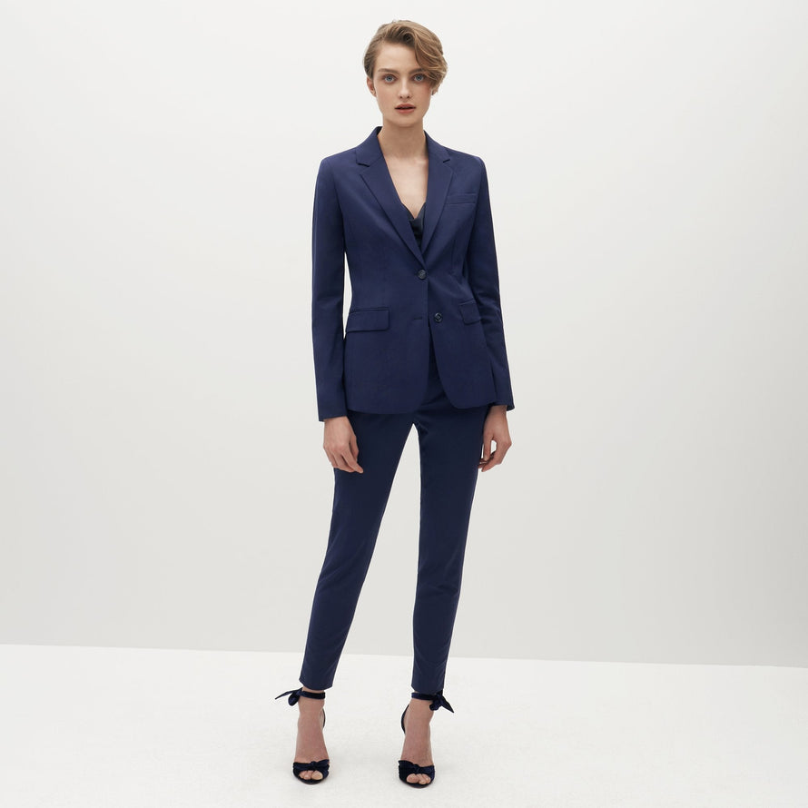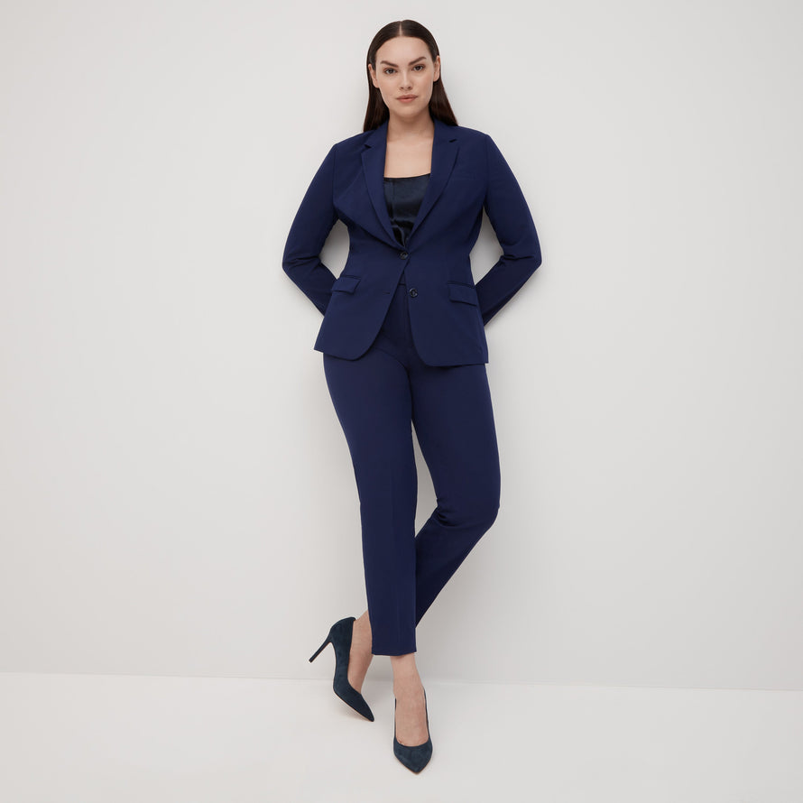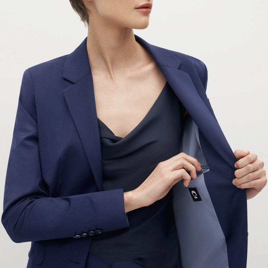 The power suit, made simple: the Women’s Brilliant Blue Suit Jacket. Ultra-wearable, this women’s blue blazer is both approachable and vibrant, striking the perfect balance. With the color turned up a notch, this is the royal blue blazer women’s fashion lovers are seeking. Details are key in this blue suit jacket for women, with a classic look, notch lapel, flap pockets, and more. This royal blue blazer is women’s power piece for workwear, wedding guest style, and formal functions.